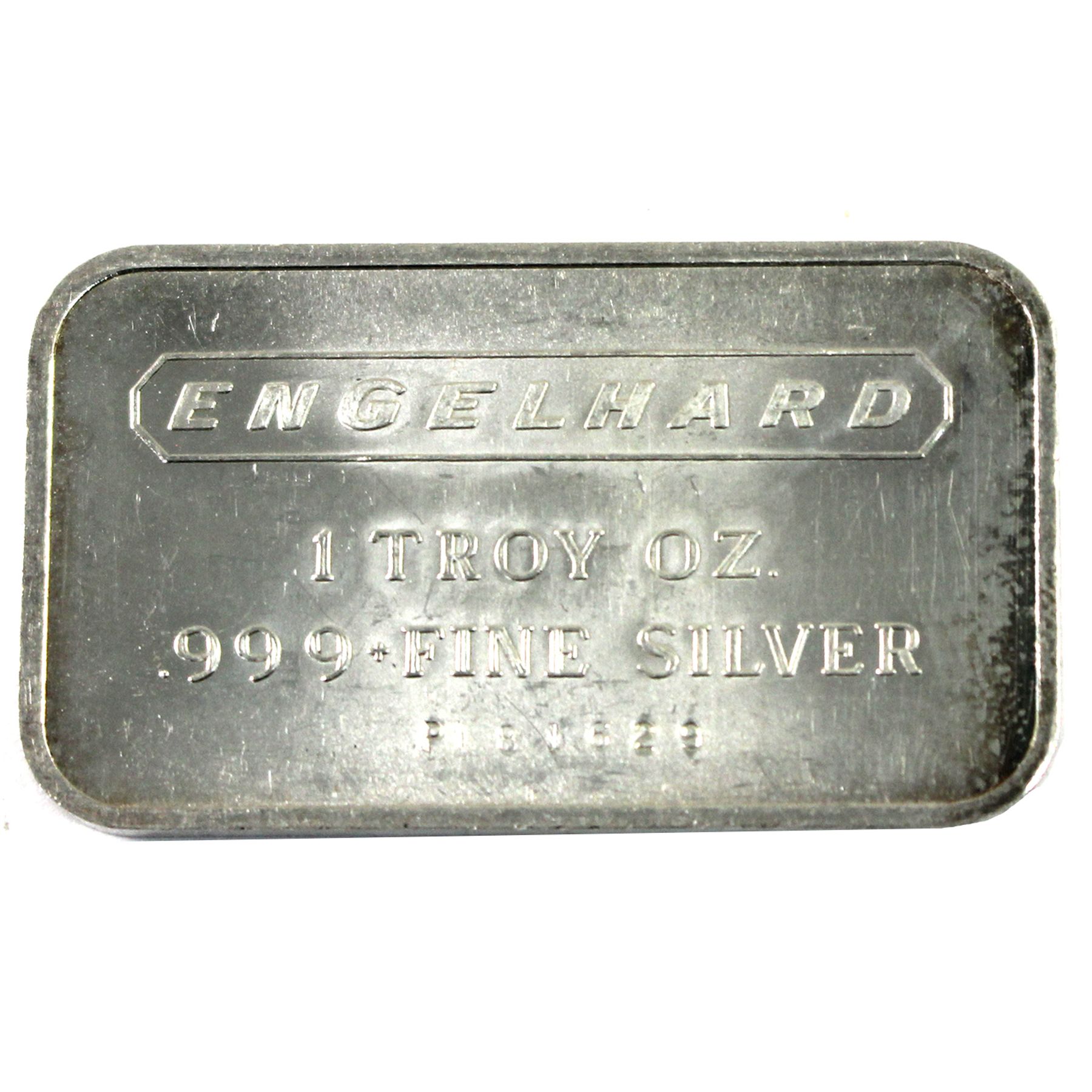 Vintage Engelhard 1oz .999 Fine Silver Bar (TAX Exempt). 1981 Example with the repeated Engelhard logo instead of the frosted finish. Serial #PI81629.