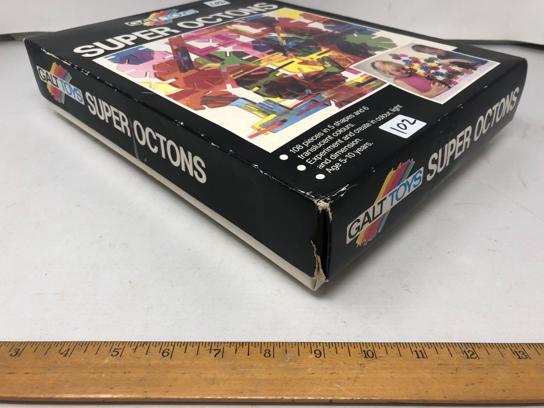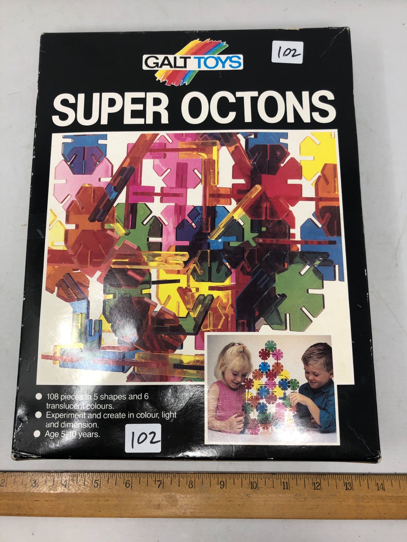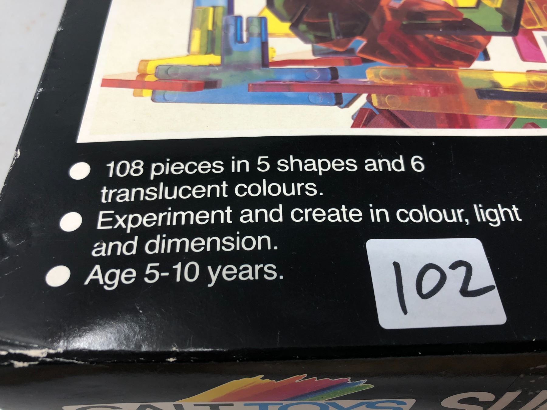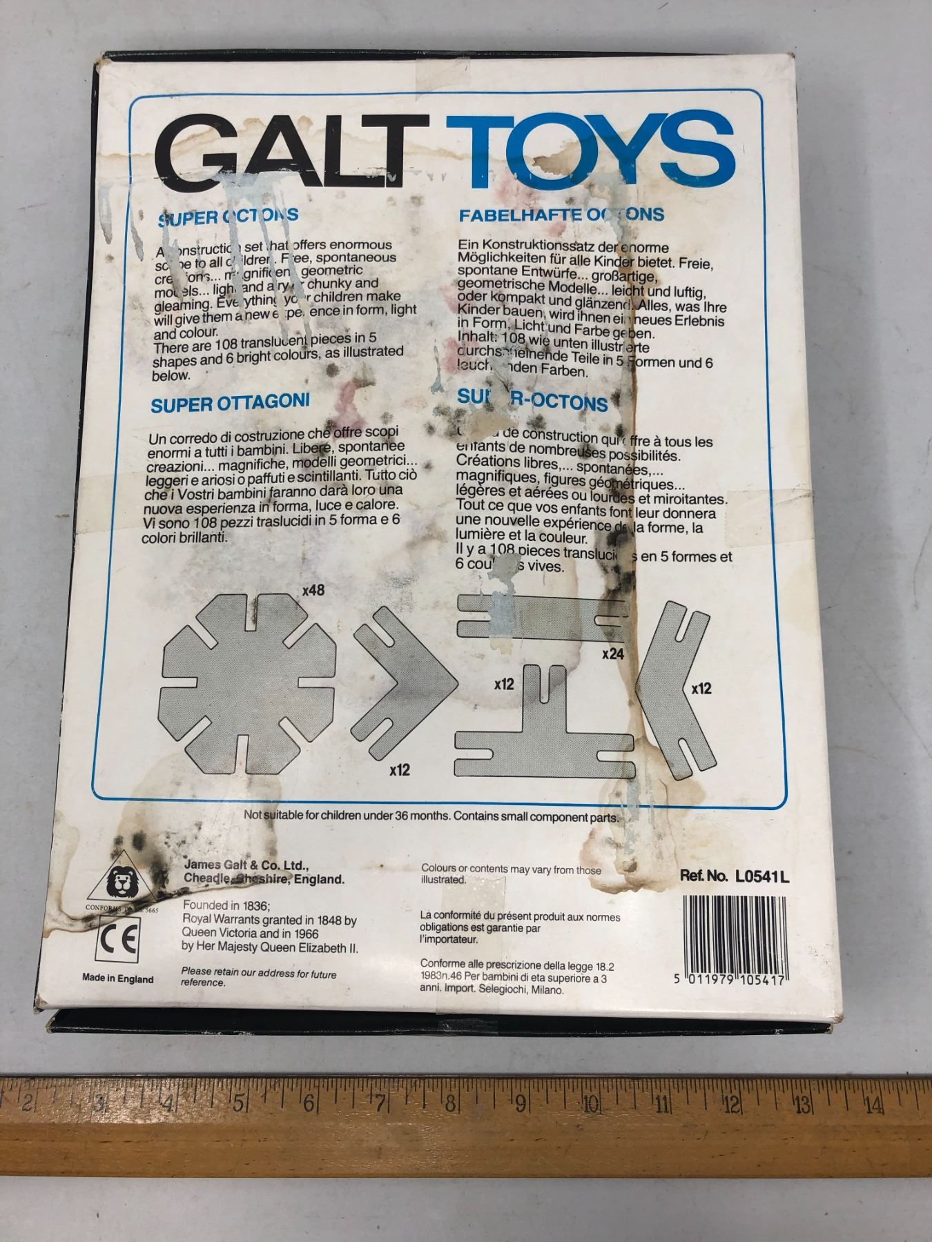 Vintage made in England Colour Plexi 2D building tiles. Galt Toys “Super Octons”. 108 pieces