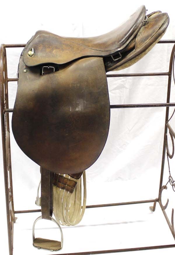 Antique/Vintage English Leather Saddle, measures 19'' x 34'', stirrups are marked Eglentine England, cinch is marked US, saddle sand is not included, however could be negotiable