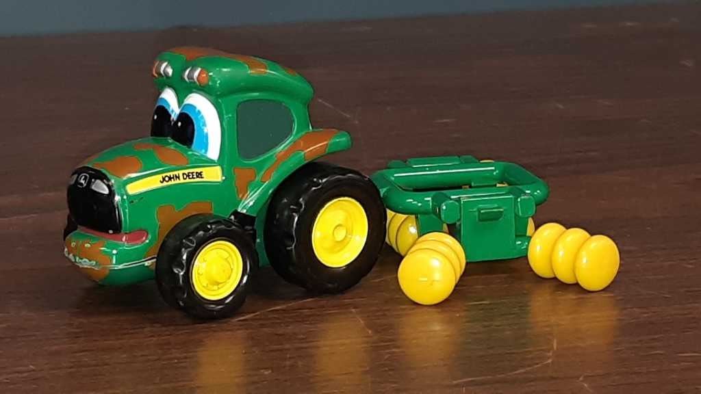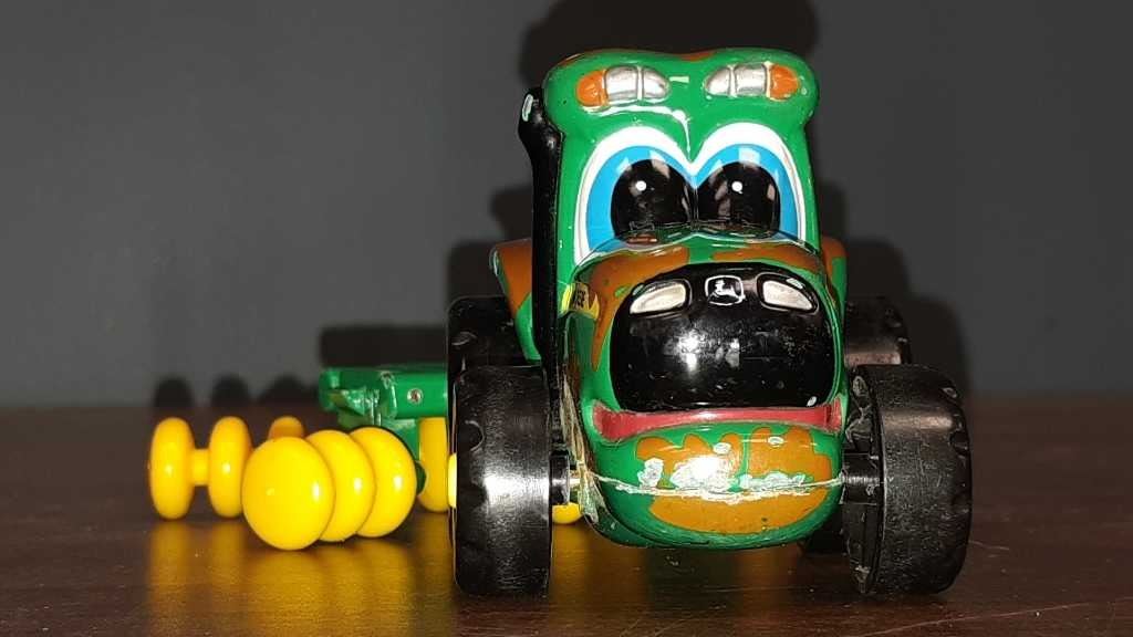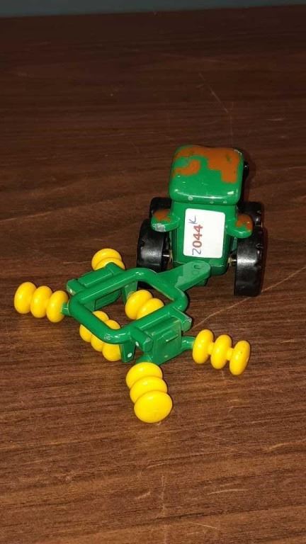 Vintage Ertl John Deere tractor and cultivator probably 1/64 scale