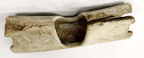 Antique/Vintage Native American Eskimo or Inuit Carved Bone Tool, measures 3.25''Deep x 5.25''W x 10.75''L, has 2 drill holes however they do not go all the way through the tool