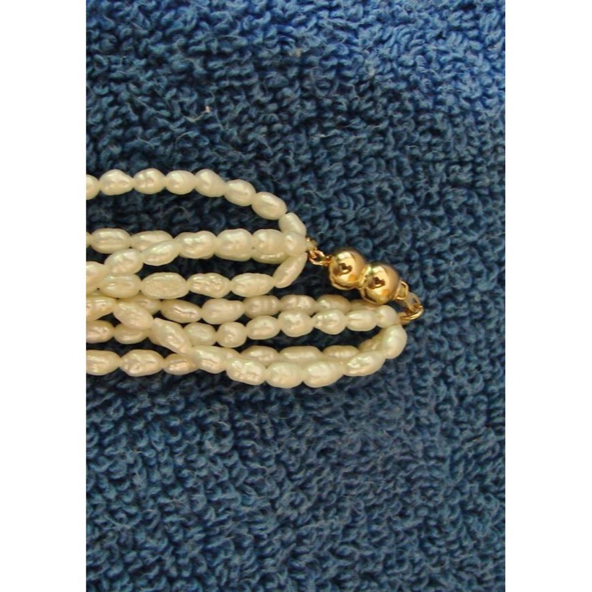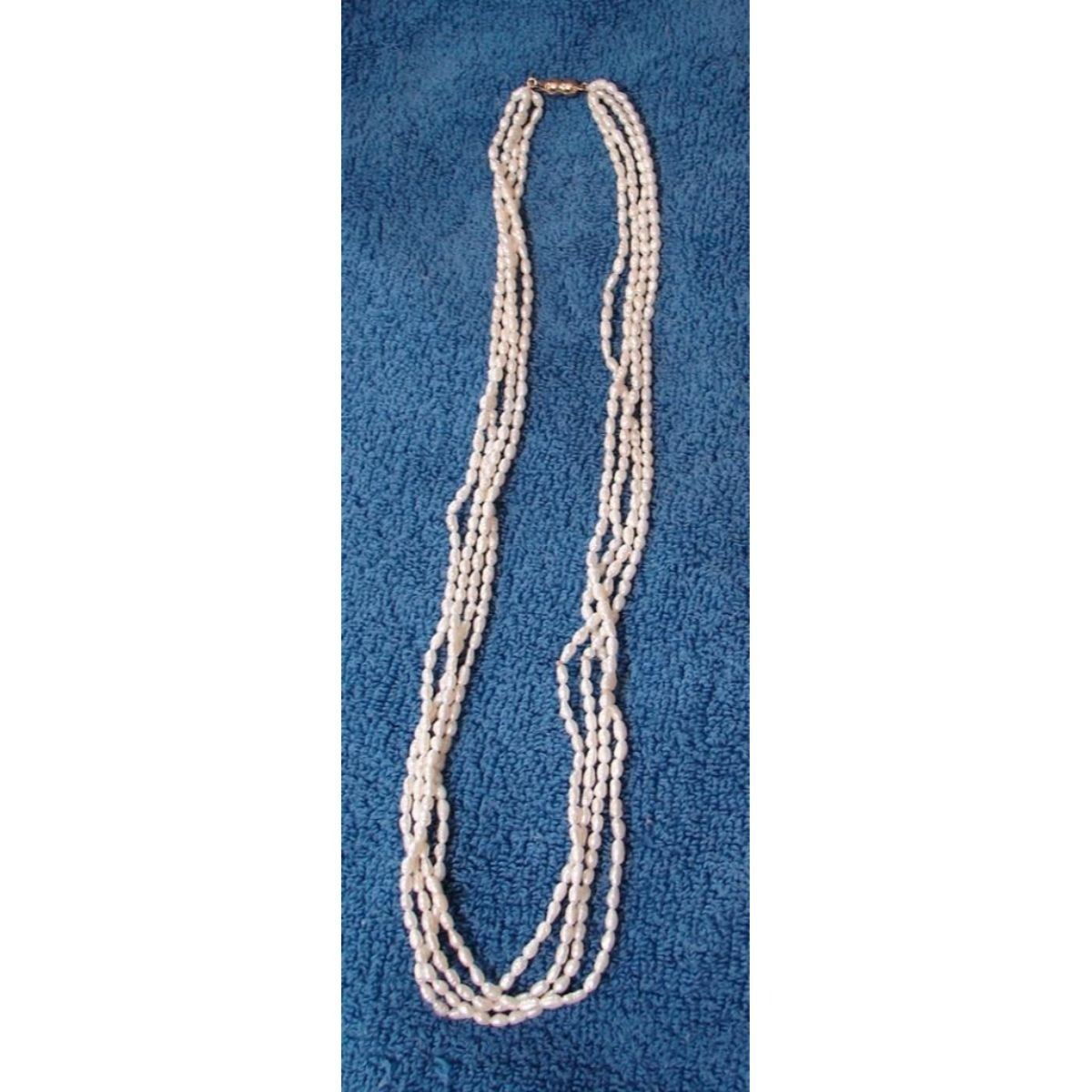 Estate find, vintage necklace. Four strands of 3-5mm Baroque freshwater rice pearls. 24" necklace with 14kt gold ( stamped 585 ) necklace. Â