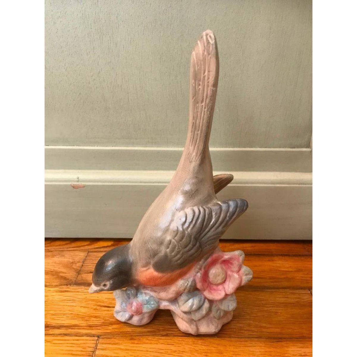 Mid-century bird figure, from an estate in Mississippi. Hand-painted molded ceramic Robin bird. 9 1/2" H X 5" D X 2 1/2" W. * small fleabite to back wing