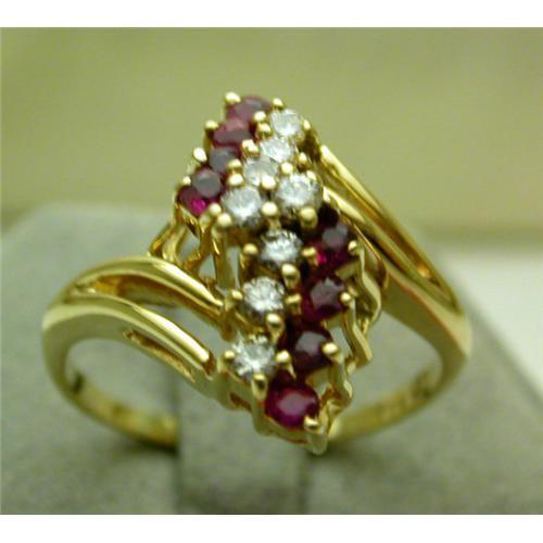 Nice Ruby and Diamond Bypass Ring with .16 ct* round Red Natural Rubies and .16 ct nice white round diamonds. This ring weighs 3.1 gm and is a size 7 1/4, could be sized if needed. Stamped 10K. This vintage ring has a lot of appeal and looks great on the finger. *all stone size is approximate unless the item comes with an appraisal.