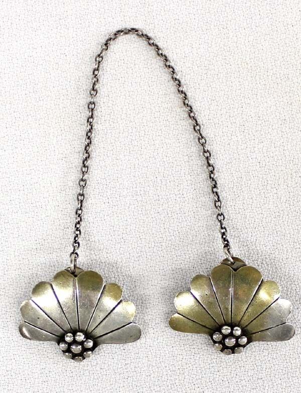 Vintage Estate Sweater Clips, measures 1.25'' x 7.5'', the two flower ends look to be sterling silver, however they are unmarked