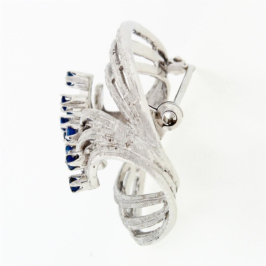 A vintage solid 18k white gold brooch, with 10 round cut natural sapphire (0.30ctw). Measures 28.76x41.04mm and weighs a total of 9.24 grams.
