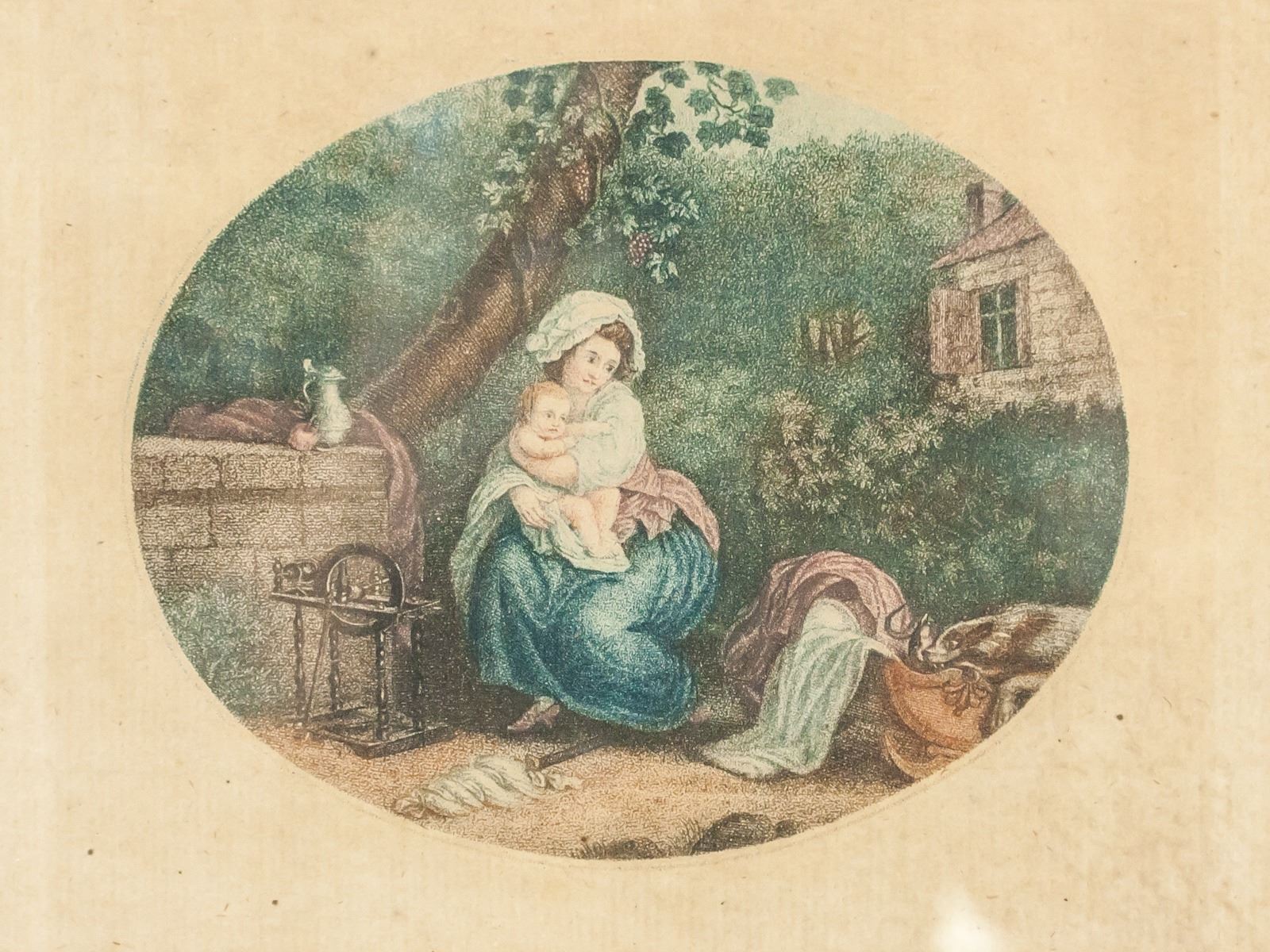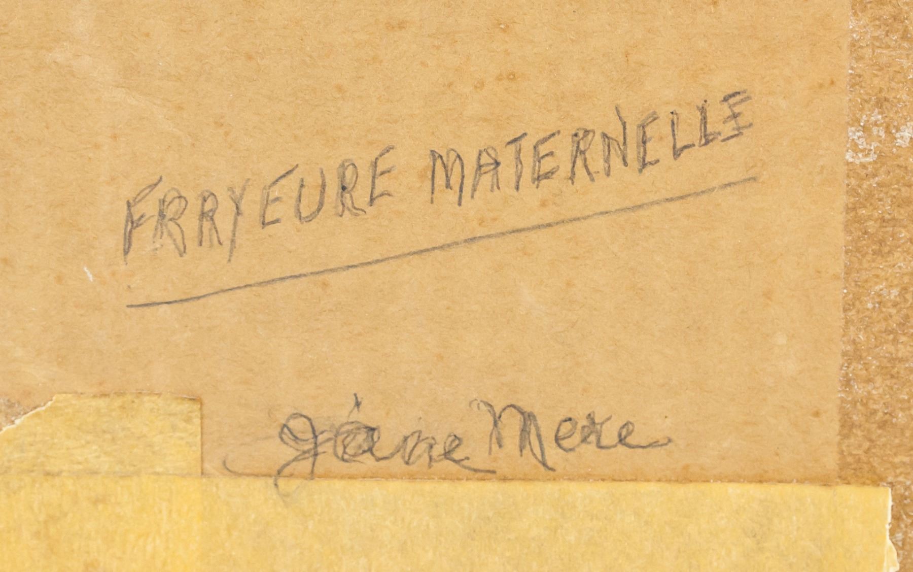 Etching on paper, framed. Featuring a portrait of a mother and child. Inscribed in pencil on verso FRRYEURE MATERNELLE / gene merc. 14 x 18 cm (5.5 x 7 inch), Frame: 23 x 27 cm (9 x 10.5 inch). Private American collection, Los Angeles, CA