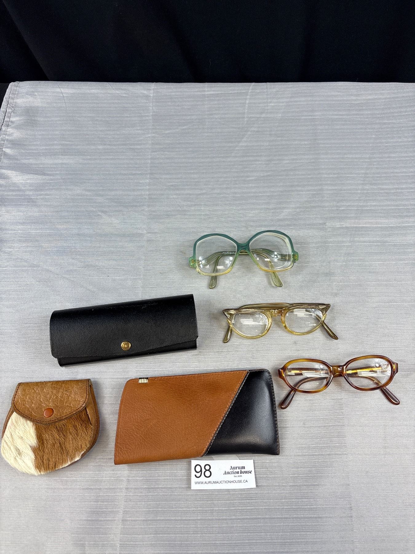 Vintage Eyeglasses, Cases and Cowhide Change Purse