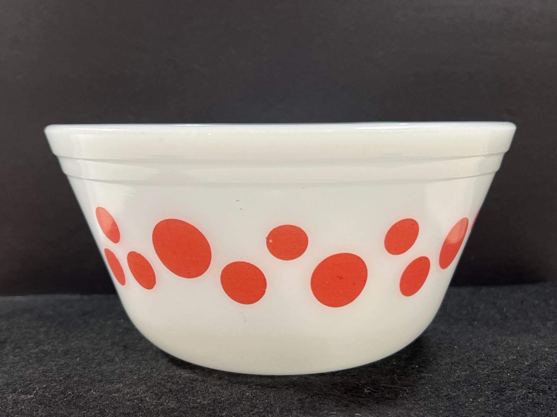 Very nice overall. Vintage Federal Glass PINK Polka Dot Pattern 7" Mixing Bowl