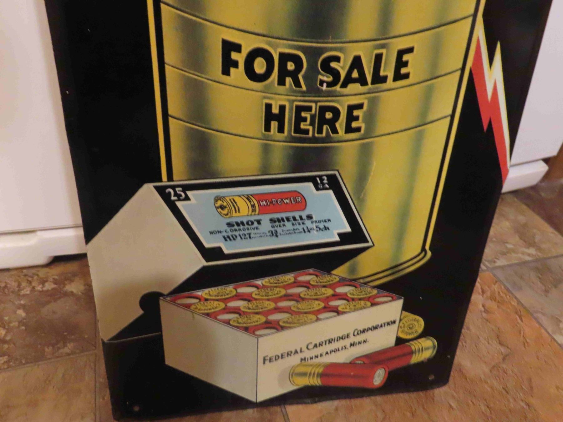 Vintage Federal High Power Shot Gun Shells Metal Embossed Sign 11 1/2'' x 28''