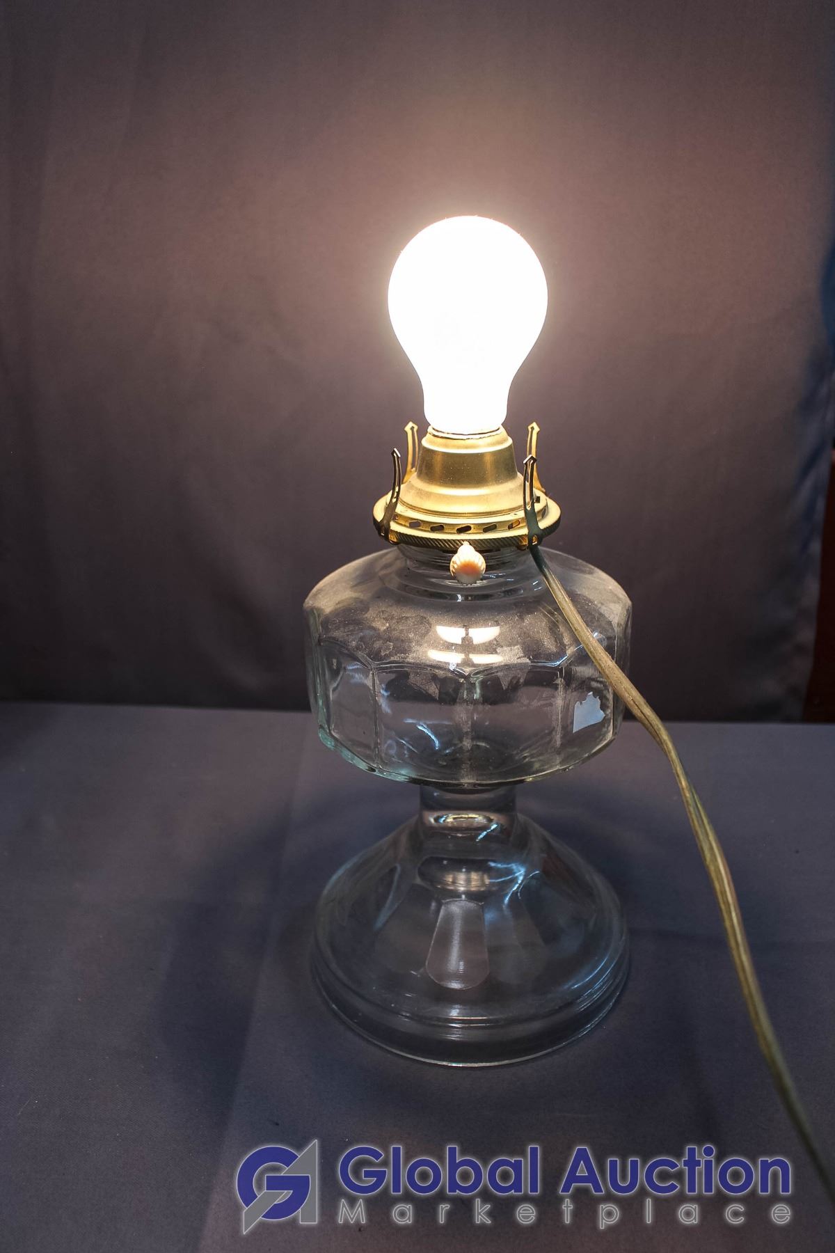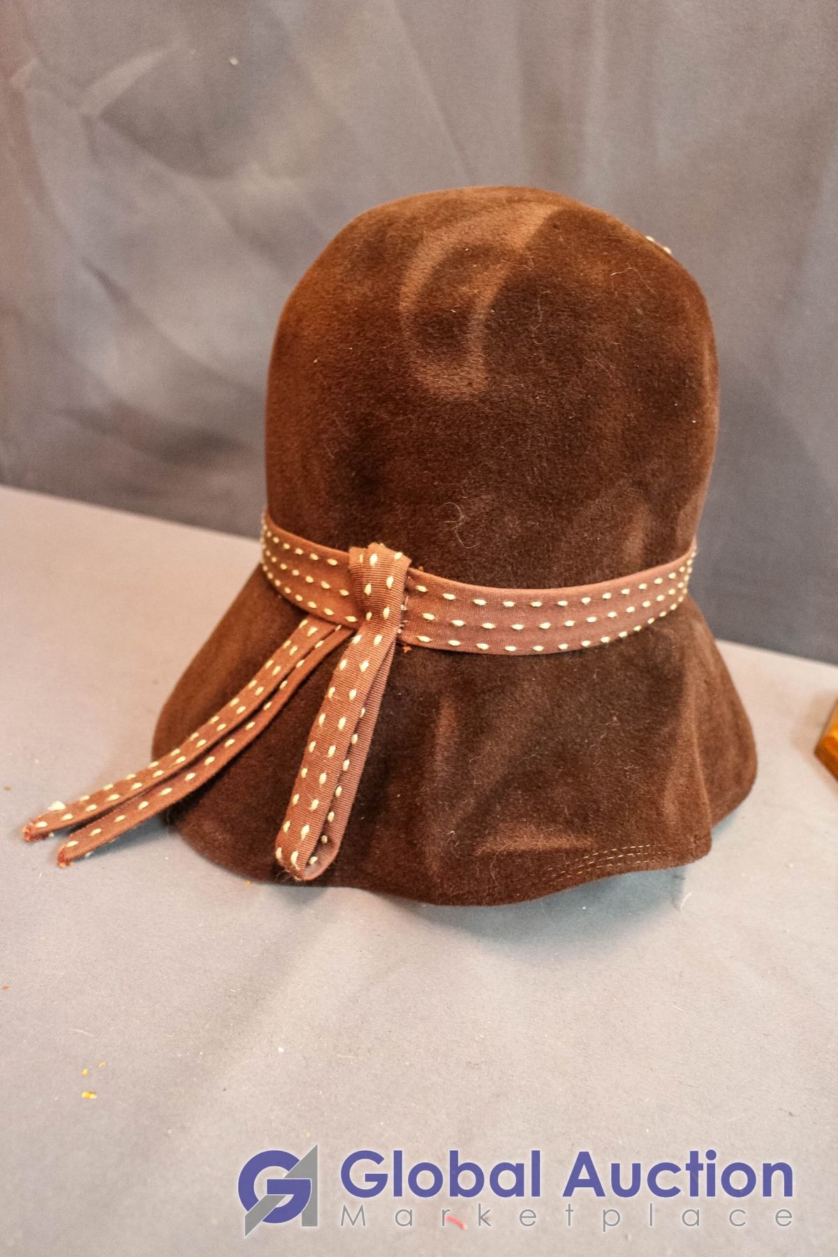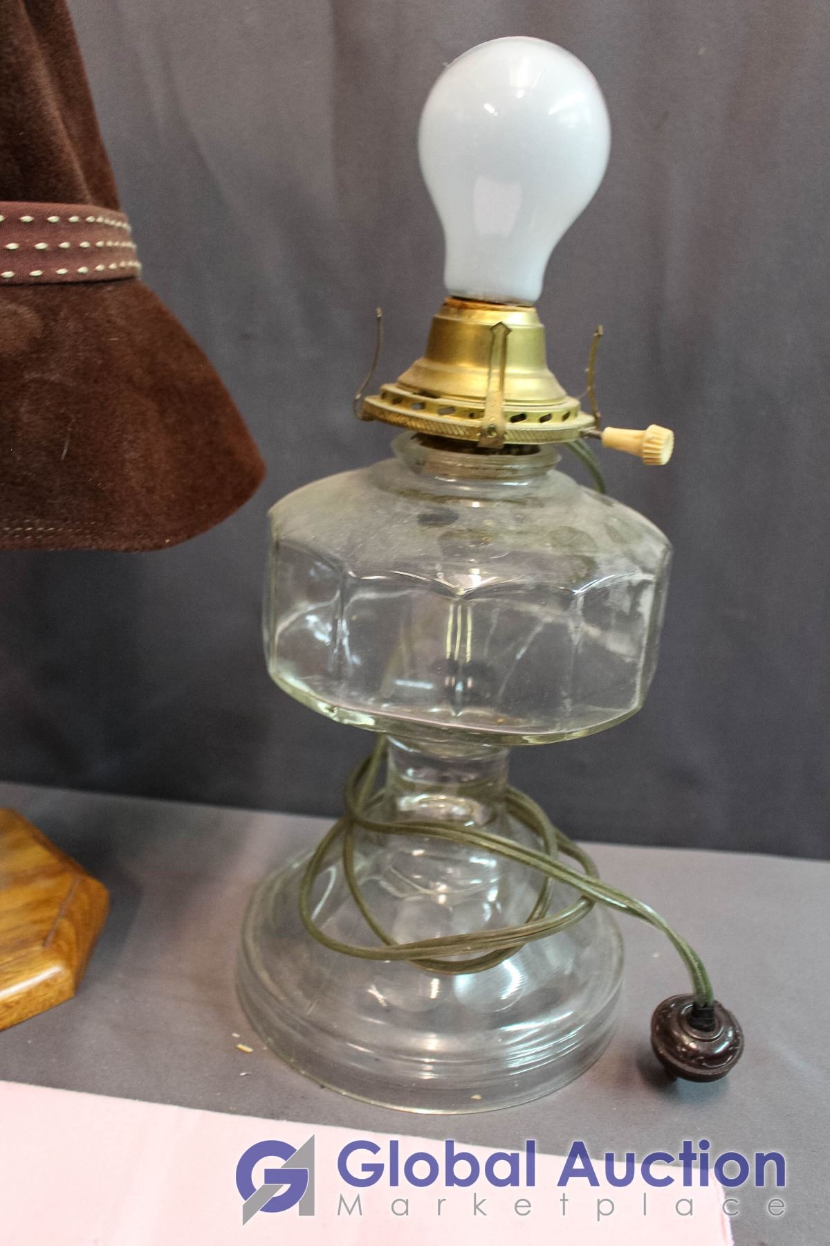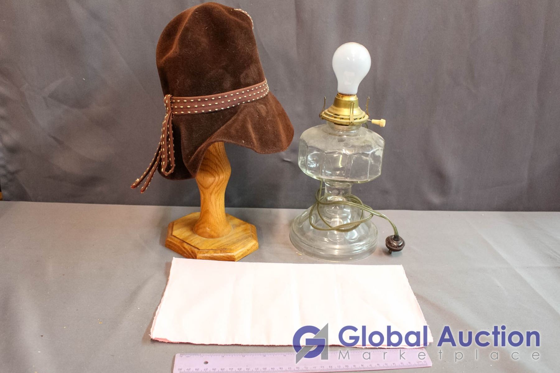Vintage Felt Hat with Hat Stand, Electric Converted Oil Lamp (Working), & Vintgage Handkerchef