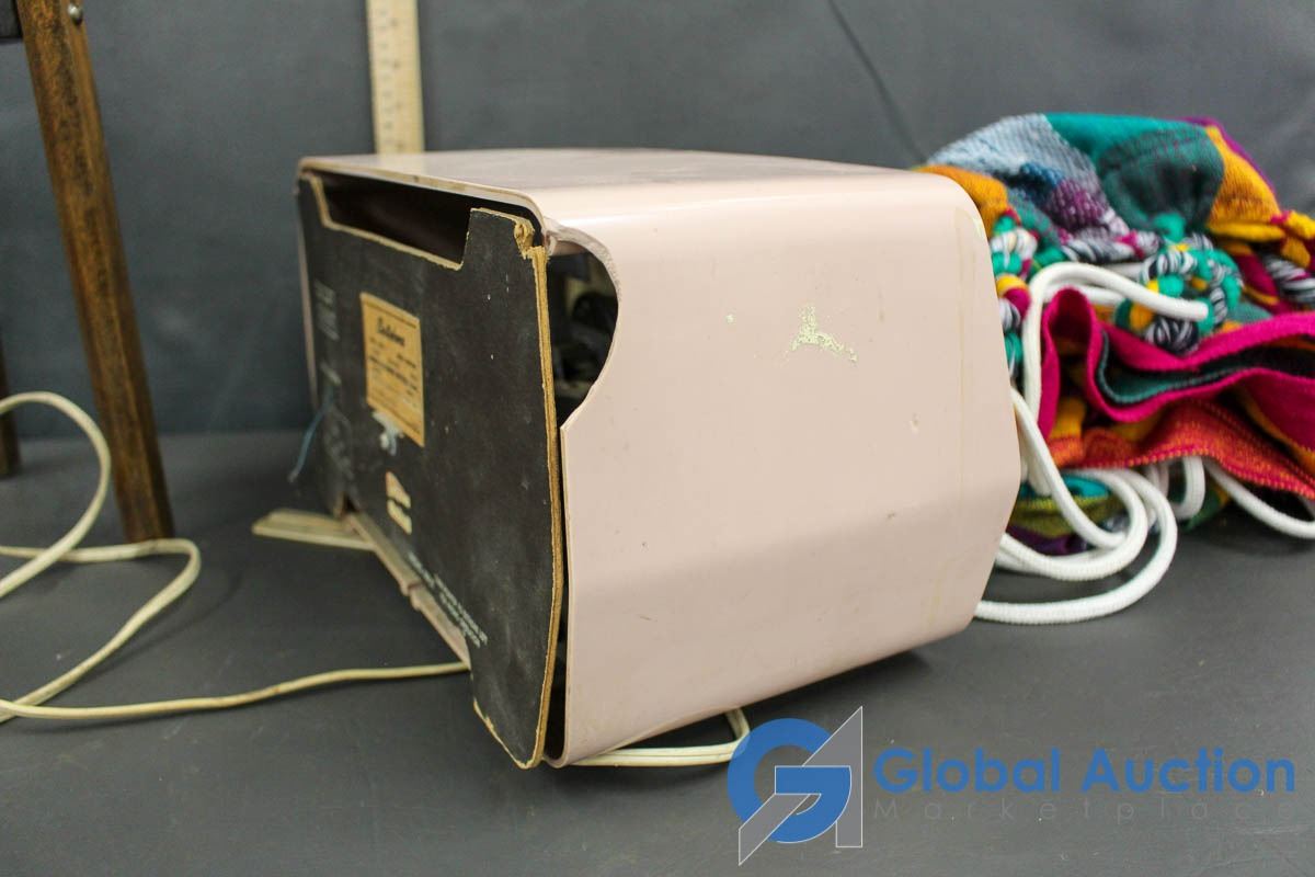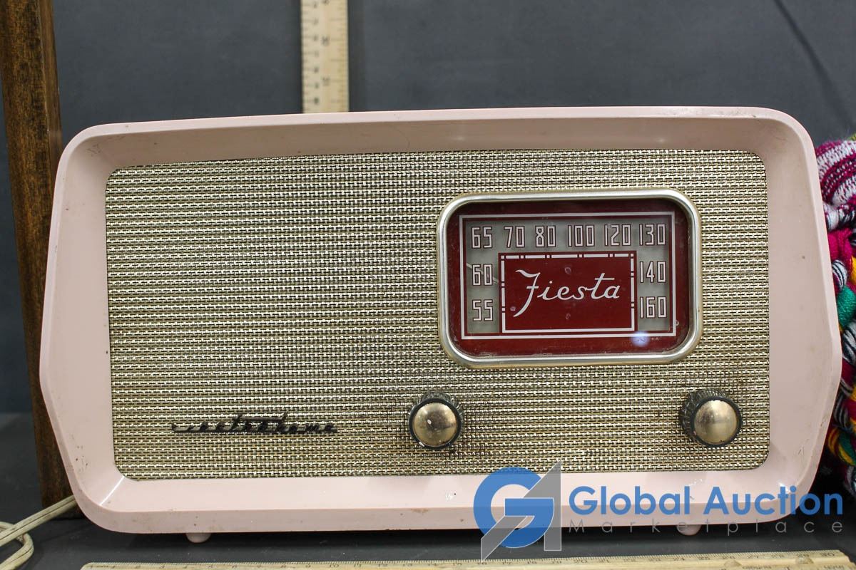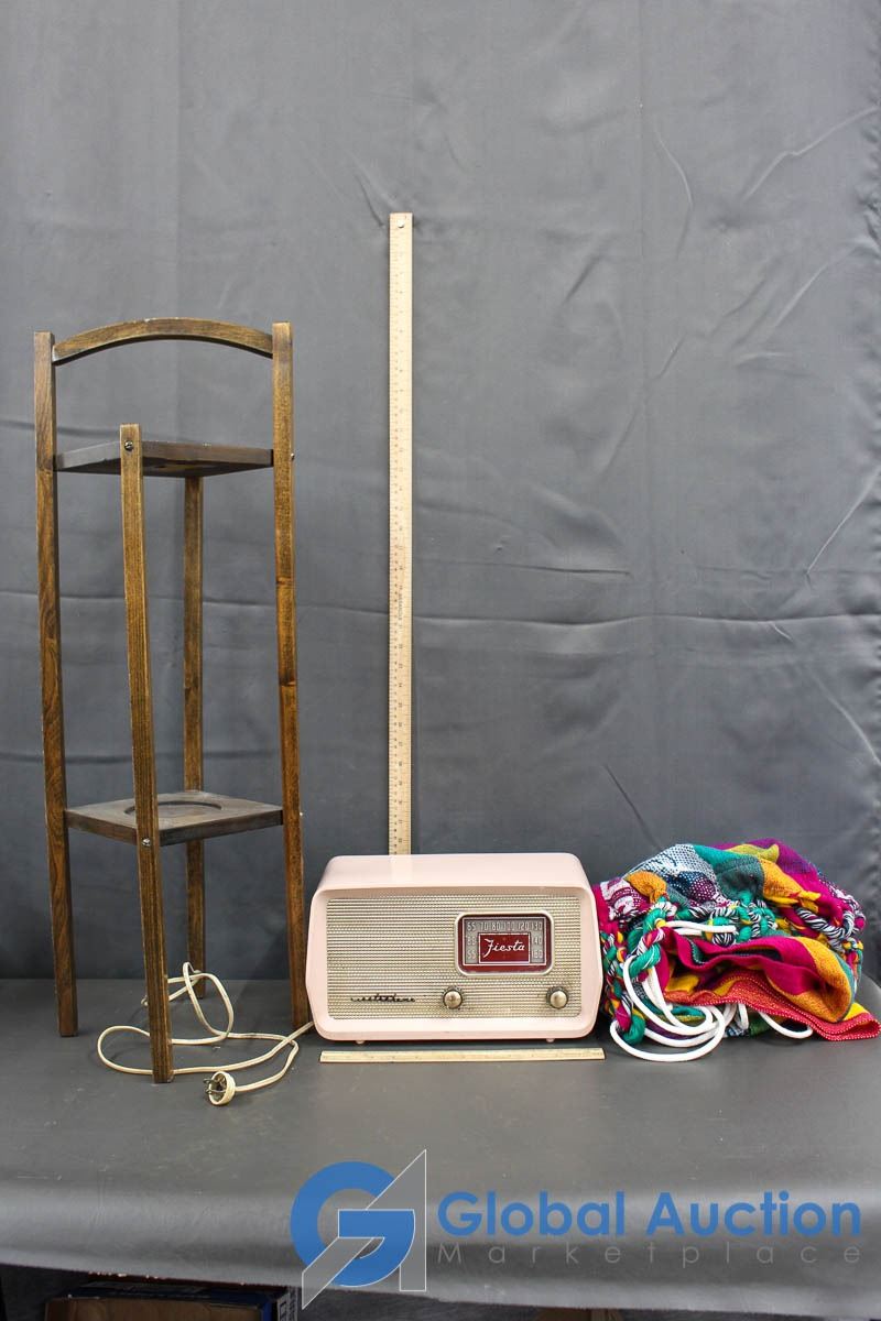 Vintage "Fiesta" Radio, Colorful Cloth Hammock, & with Plant Stand