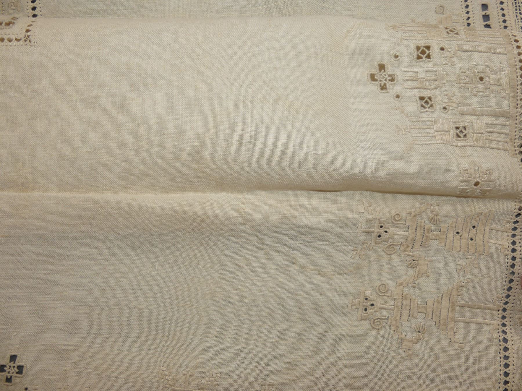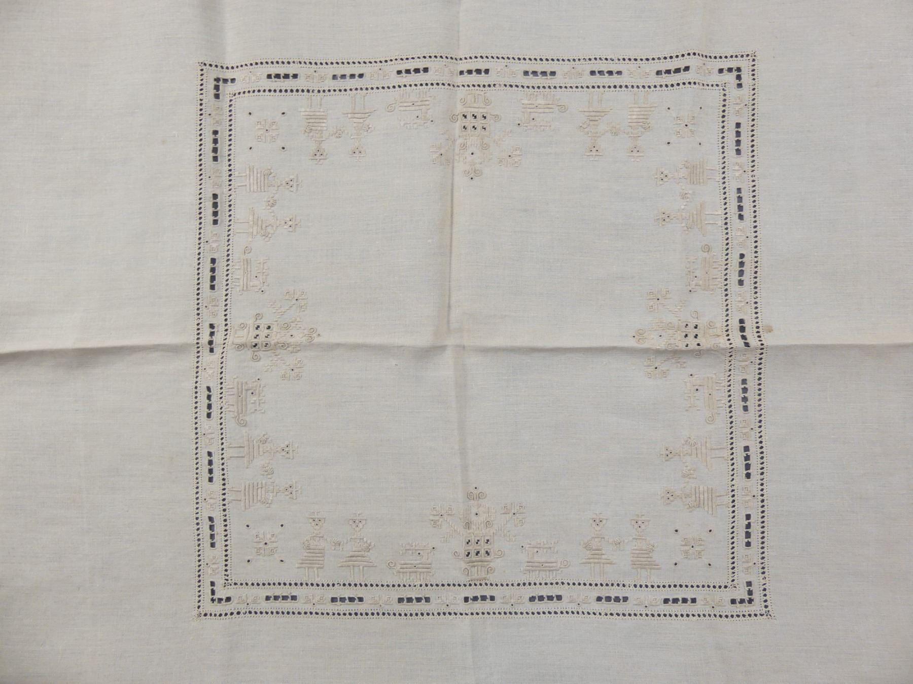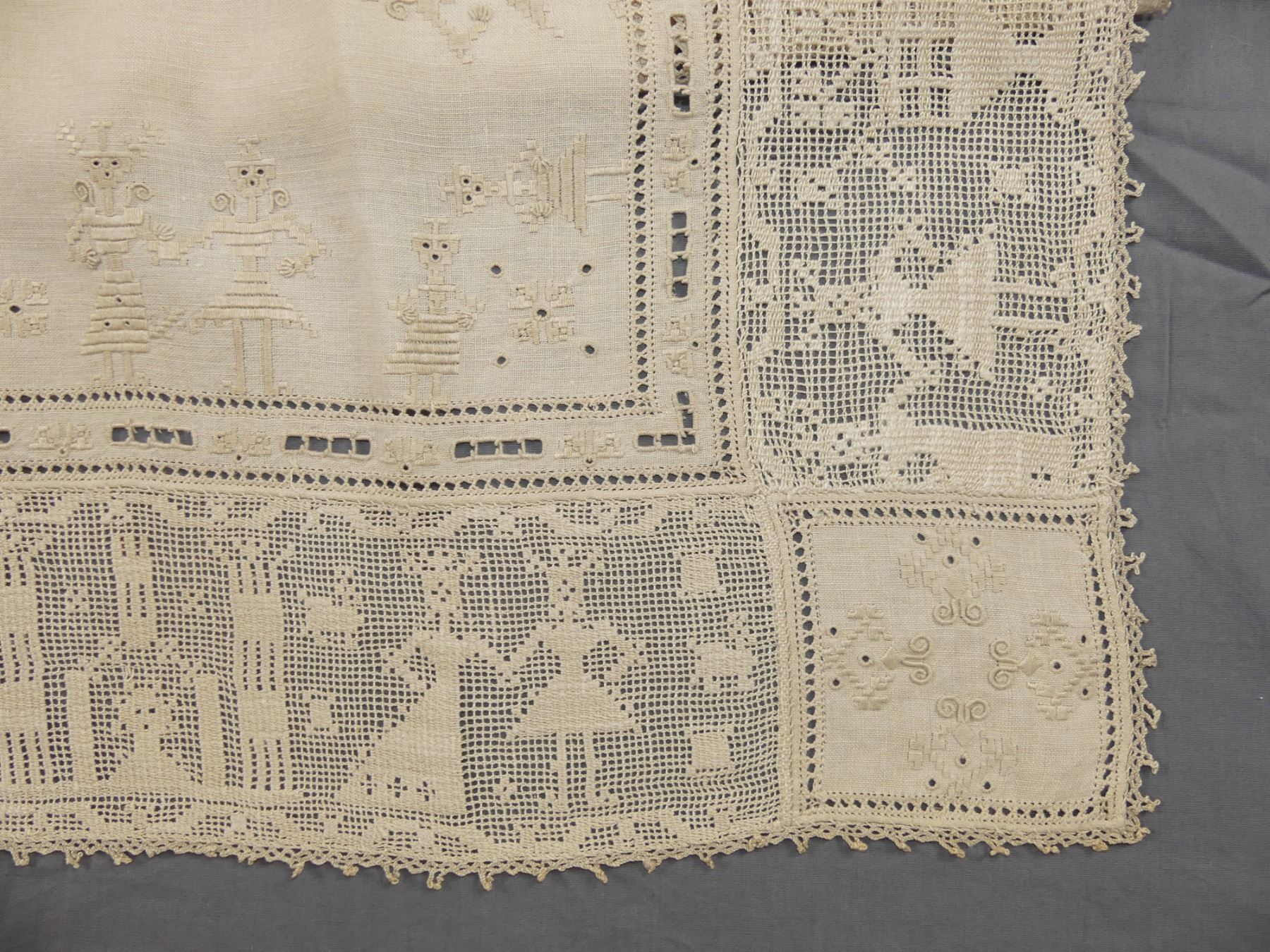Vintage Figural Italian Whitework Teacloth, from Rockefeller Estate