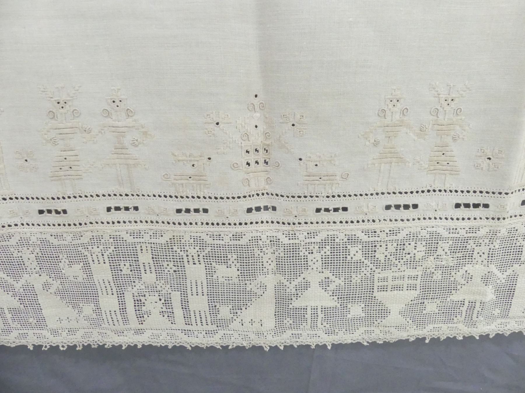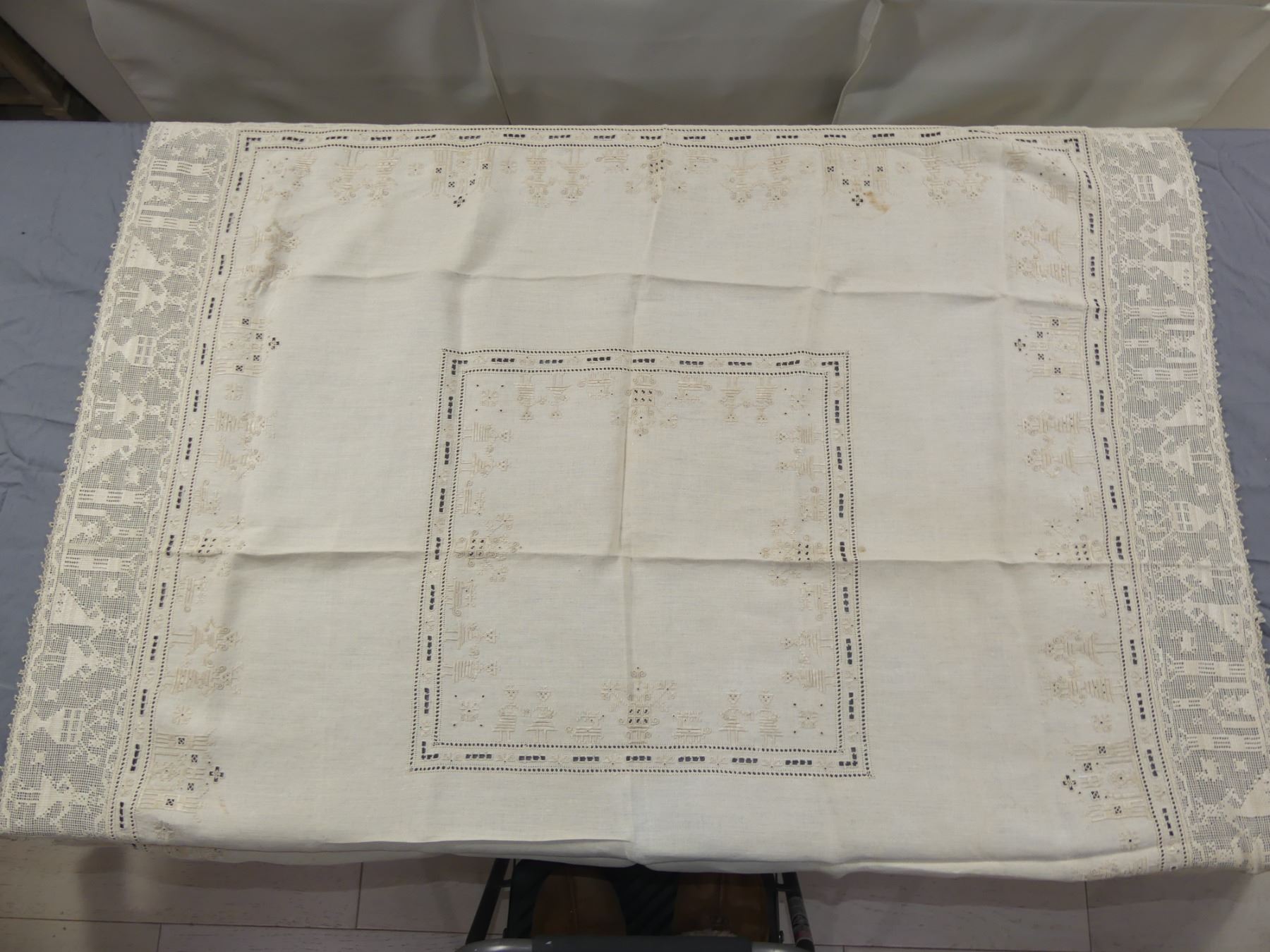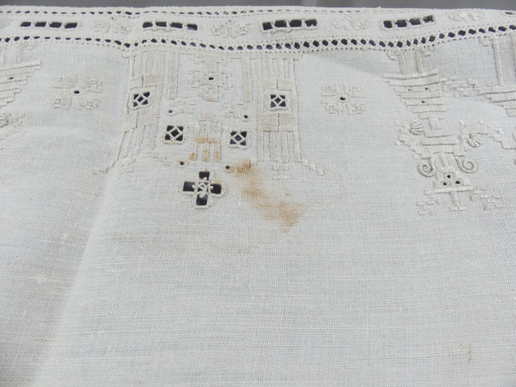 Vintage Figural Italian Whitework Teacloth, from Rockefeller Estate
