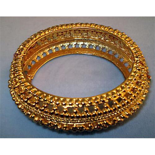 <tr><td>Title:Vintage Filigree Hinged Bangle Bracelet</td></tr>