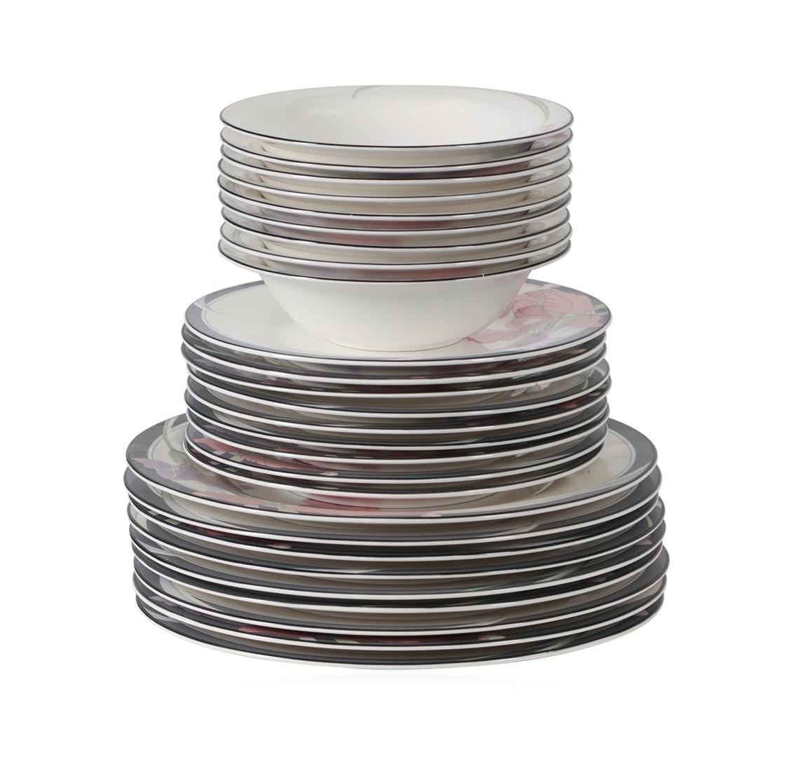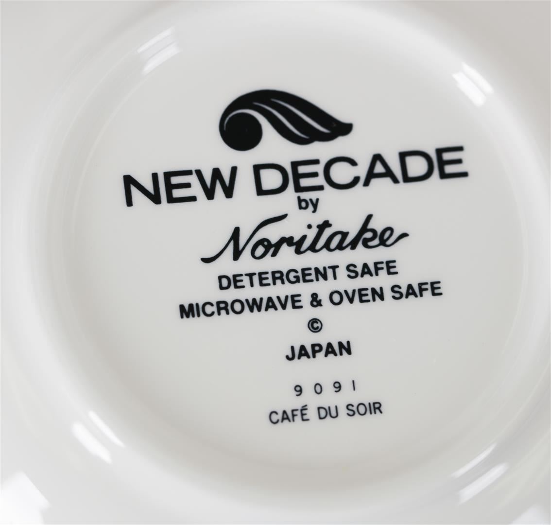 Vintage Noritake China set in the discontinued pattern "Café du Sol".  This set includes the following pieces: 9 Dinner plates 10.5", 9 Salad plates   8.5", and 9  Cereal Bowls  7"