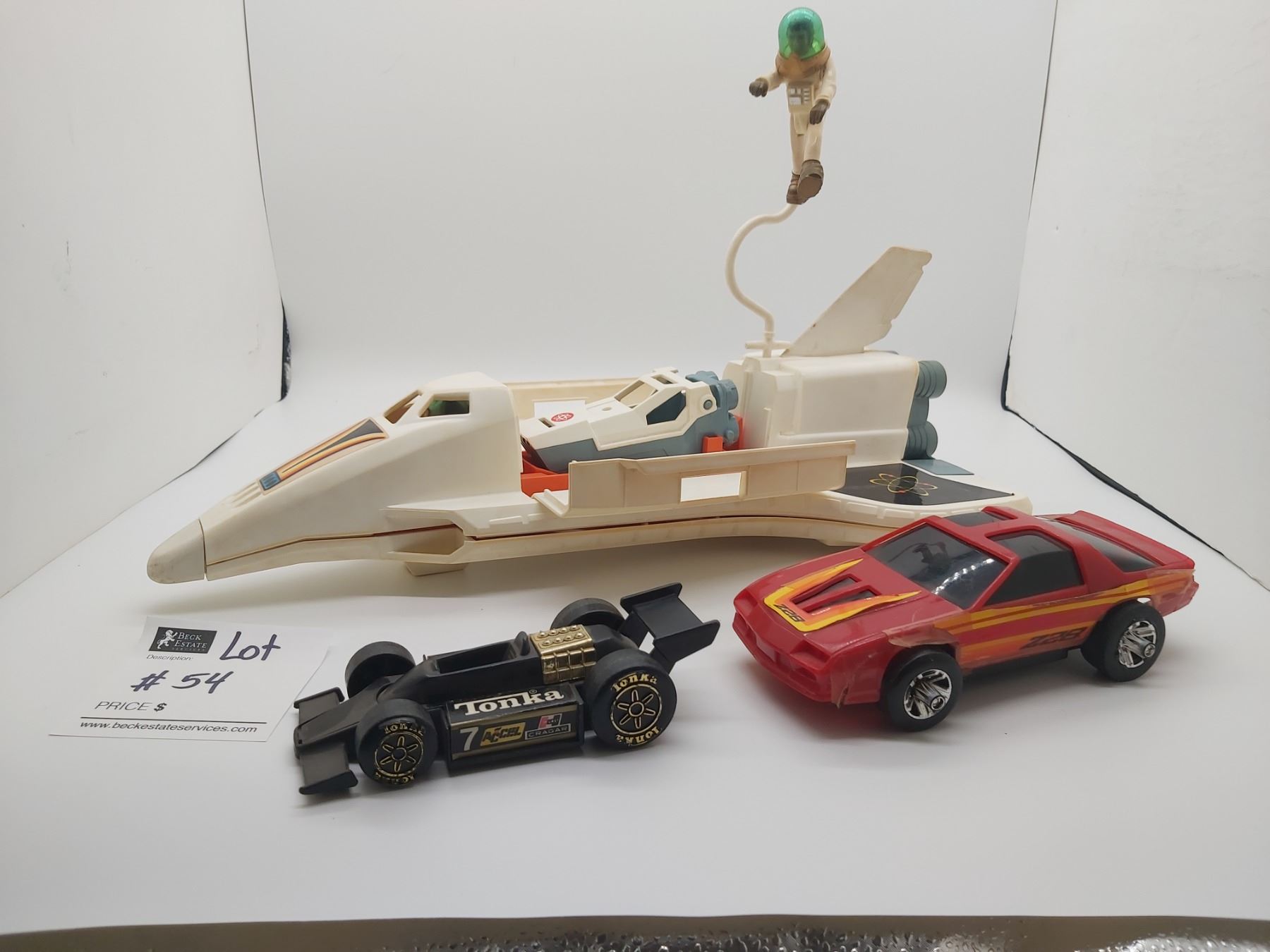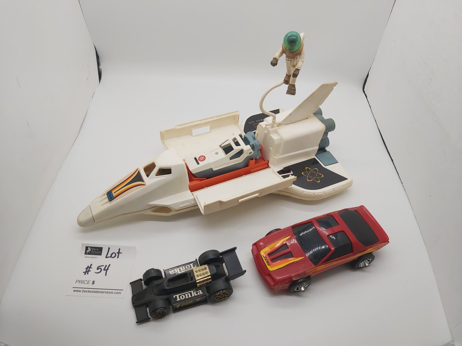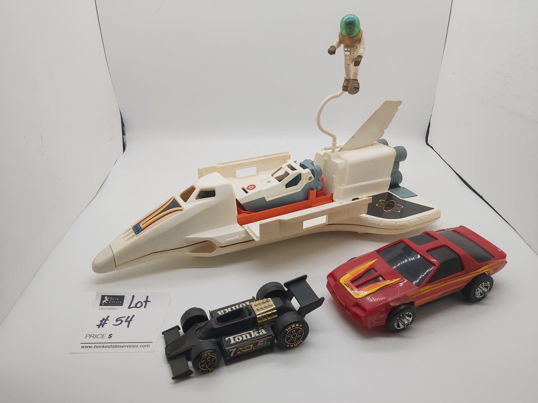 Vintage Fisher Price Little People Alpha Probe Space Ship 1979 Plus a Tonka and BuddyL Vehicles. The space ship looks to be complete with space pod, two astronauts and the space tether. The Tonka is 1979 no condition issues. The BuddyL is 1982 and it has condition issues.