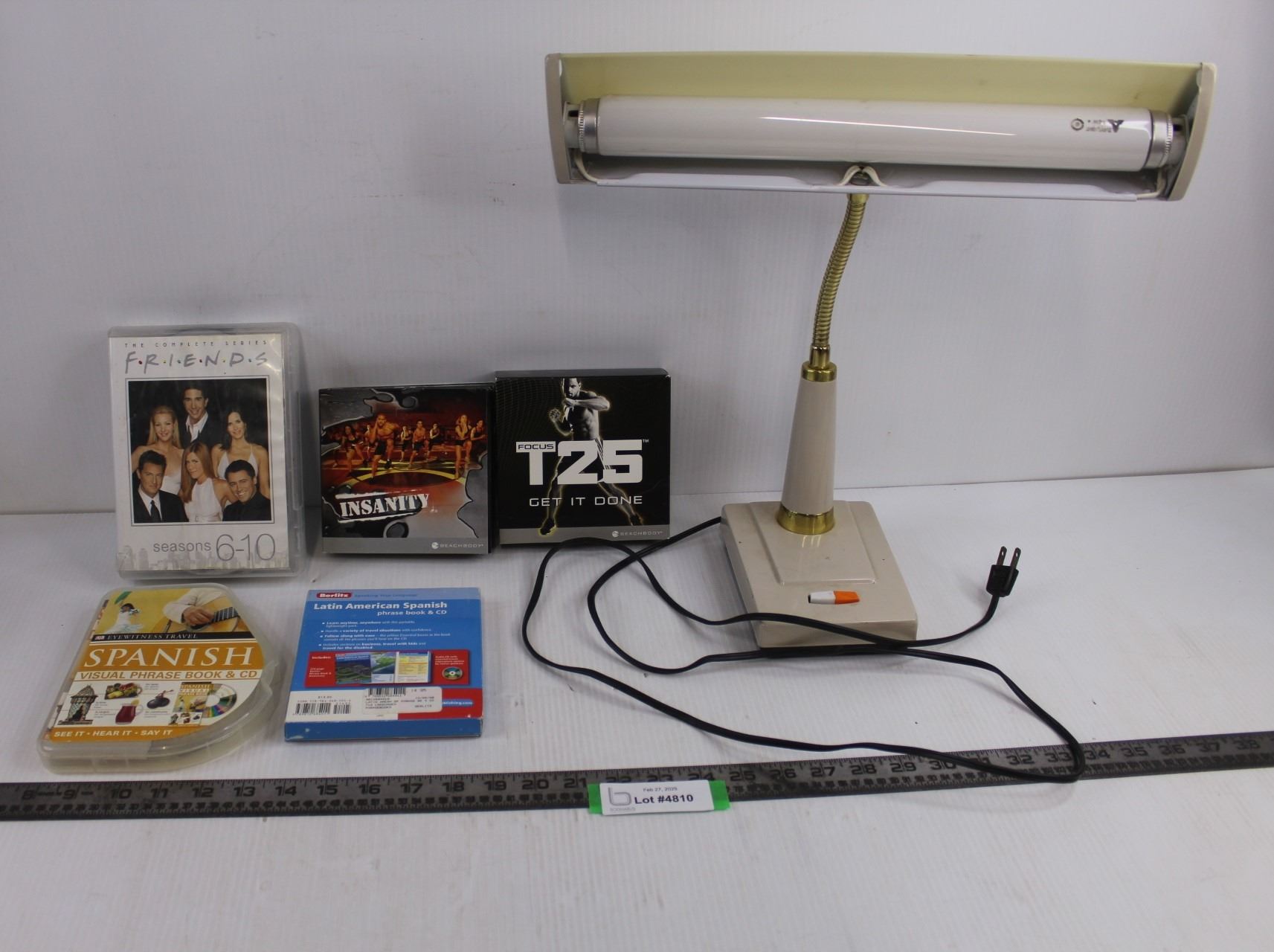 Vintage Fluorescent Desk Light - Powers On - 14" Bulb, DVD Collections & CD-ROM Programs (Spanish, Friends, Insanity & T25 Beachbody