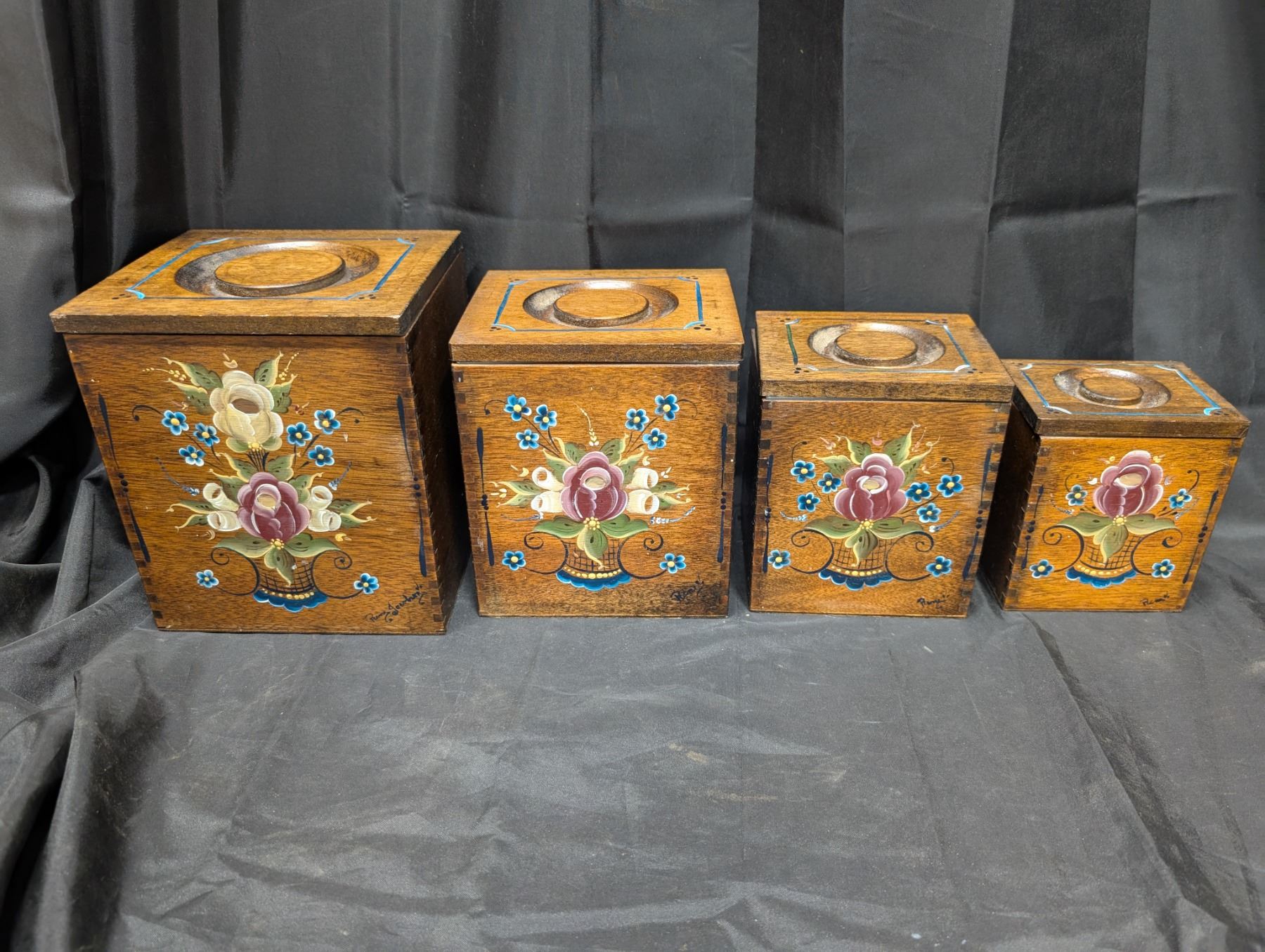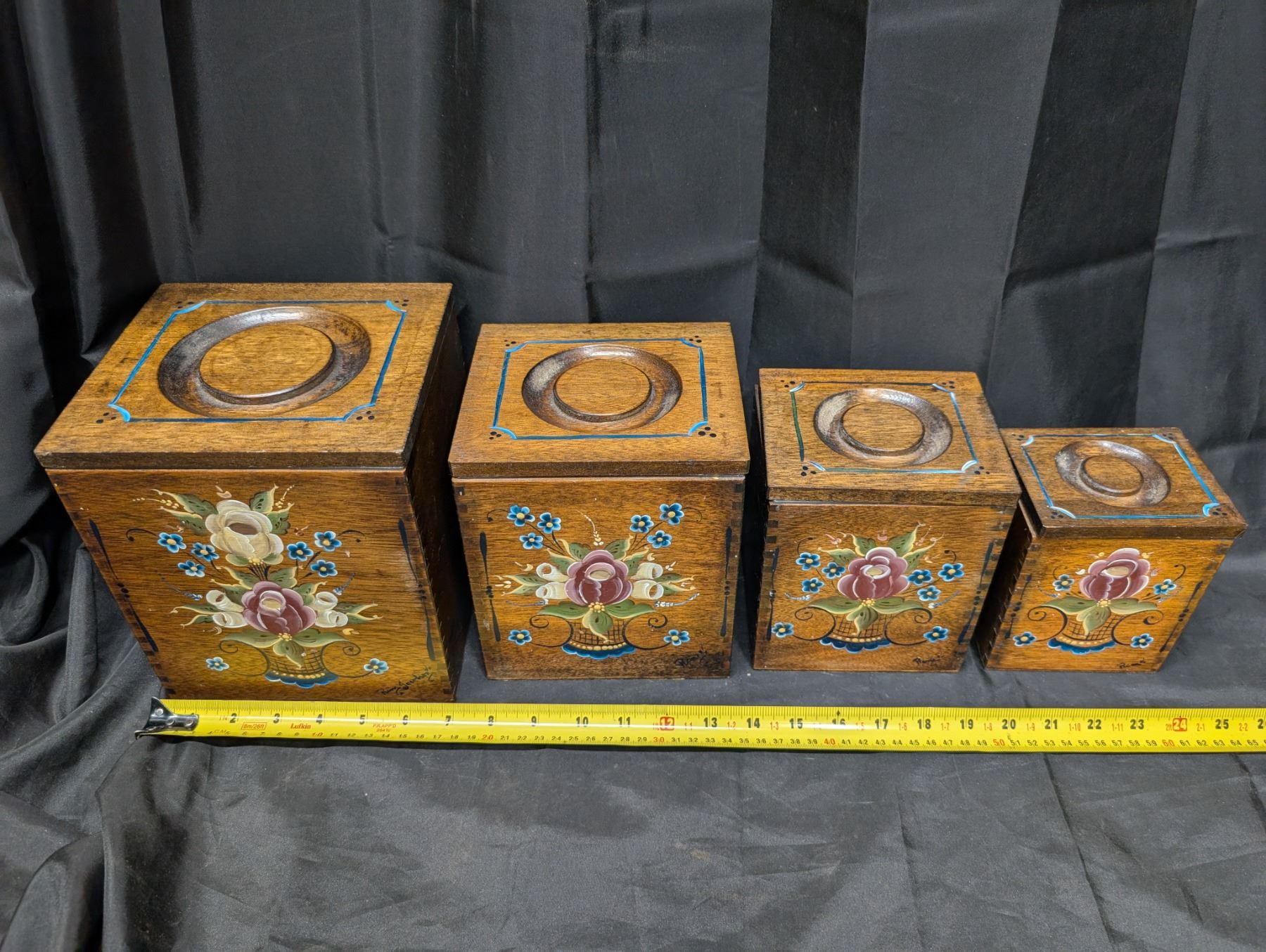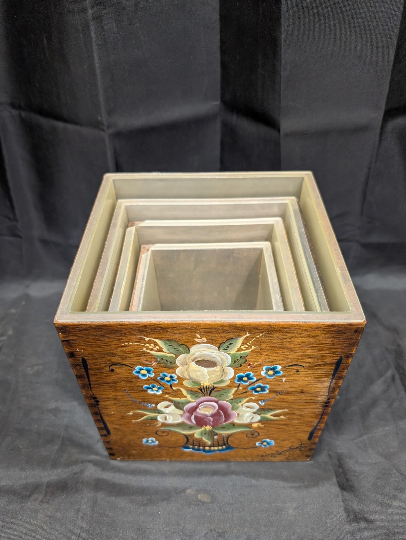 Vintage Folk Art Nesting Box Set w/ Hand Painted Floral Design