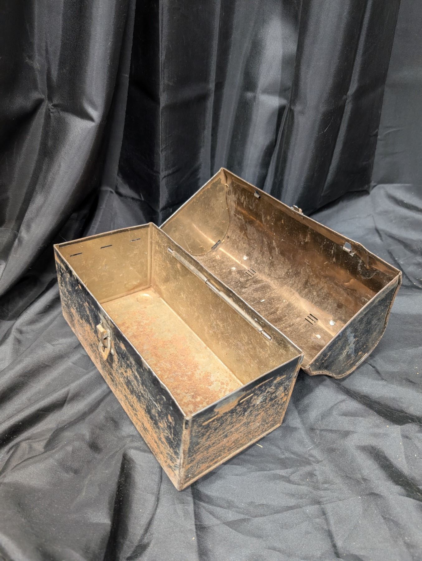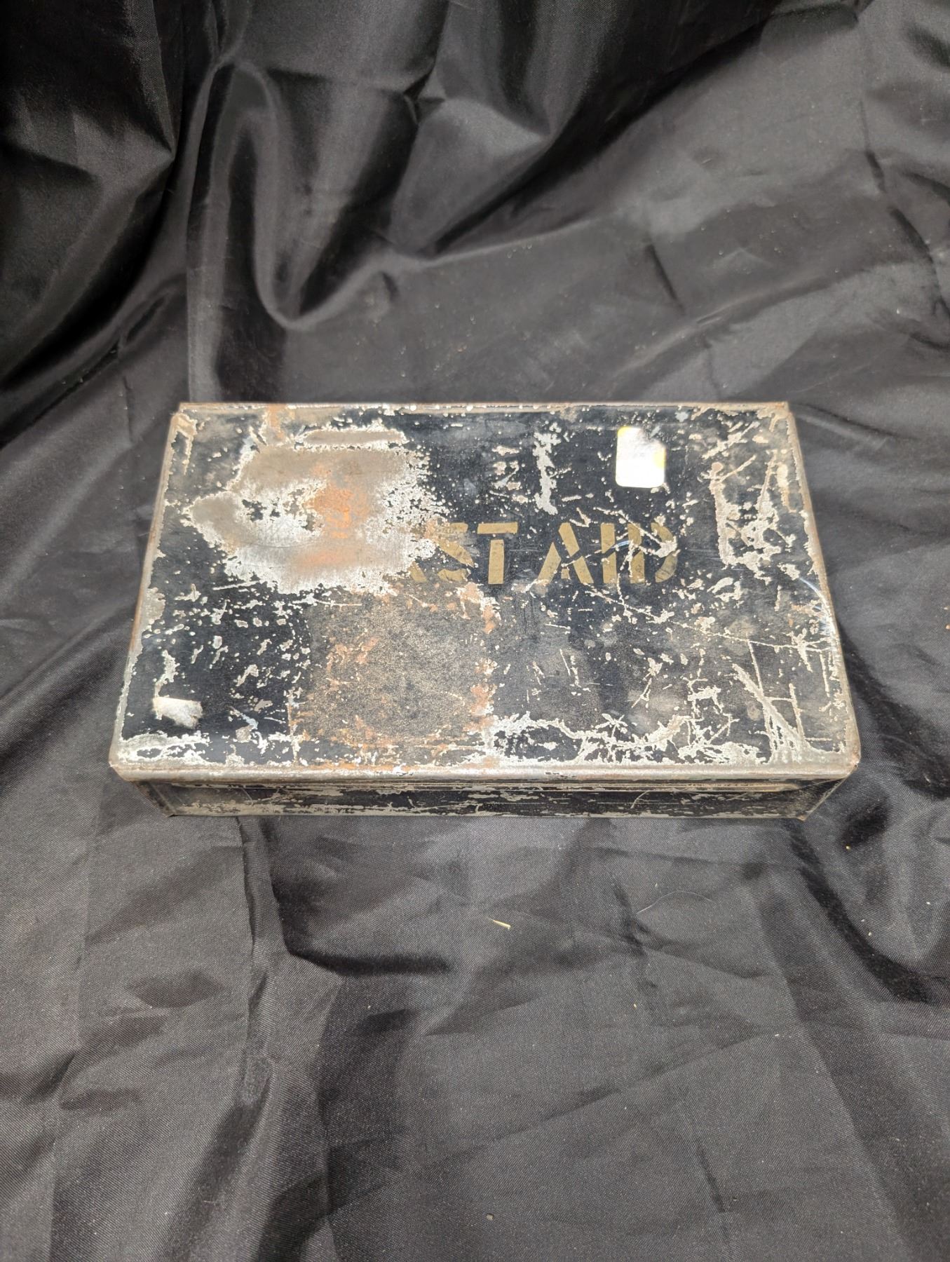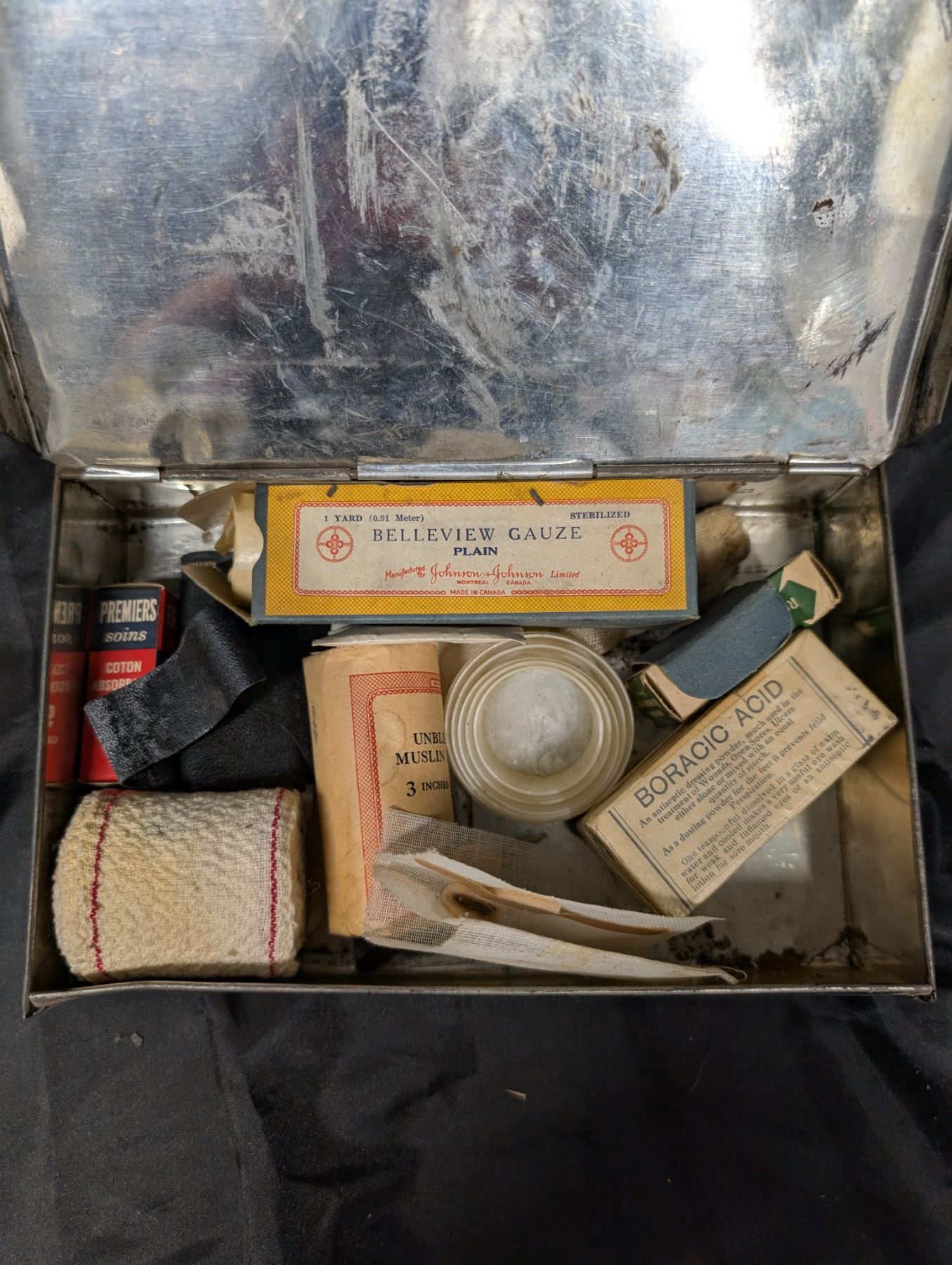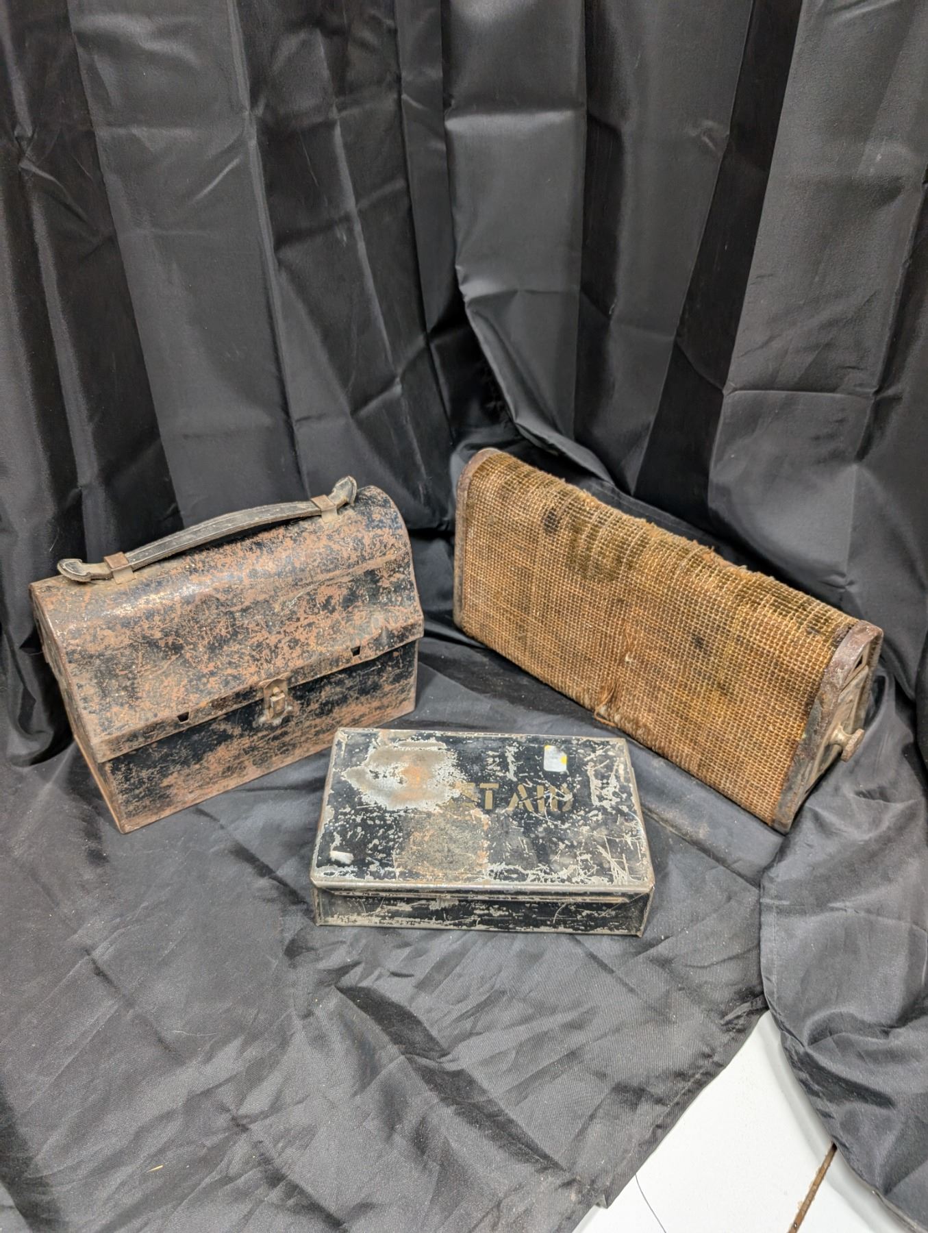Vintage Foot warmer, Metal Lunch Kit, and first aid kit