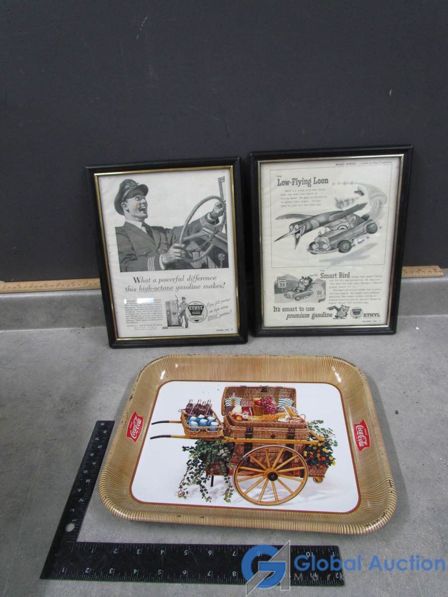 Vintage Framed Adverts and Coca-Cola Tray
