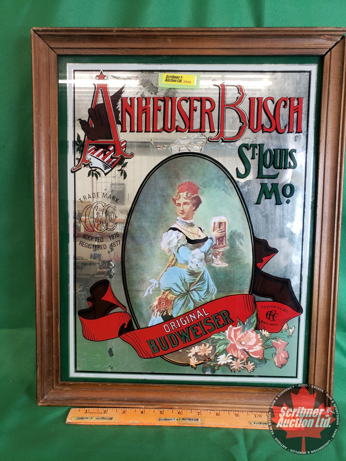 Vintage Framed "Anheuser Busch" Pub Mirror (19-3/4"H x 16"W) (SEE PICS!)