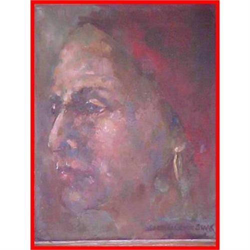 This 10" by 8" oil painting on canvas is signed by Barbara Stark(SEE PHOTO). According to a search on the internet there is an Indiana artist with that name. The portrait painting is of a gypsy woman with a large loop earring. This Impressionistic style painting comes in a 13-3/4" by 11-3/4" wood frame. No date; but I would guess the age around 1960's. The painting is in good condition; the frame has slight scuffing. I bought this at an auction of an advance antique collector.