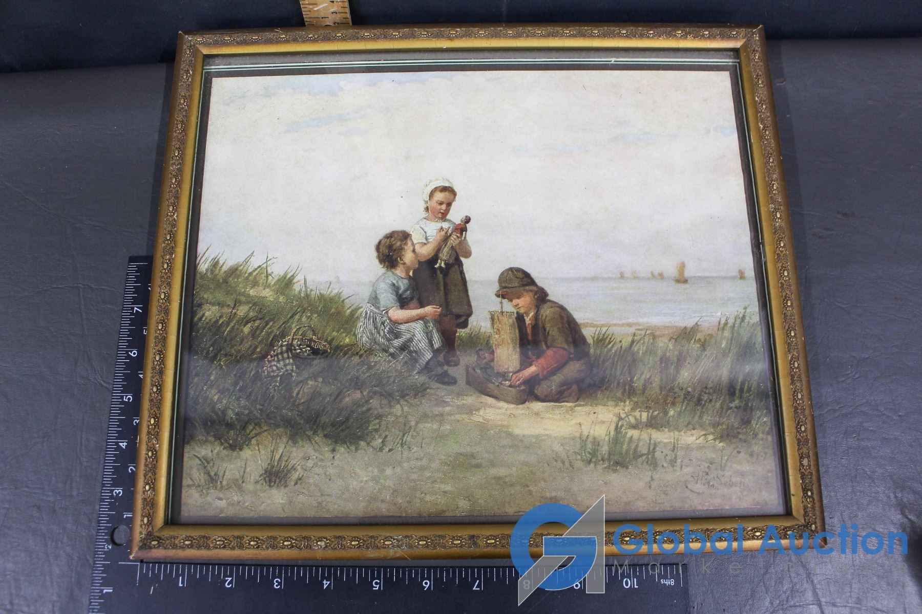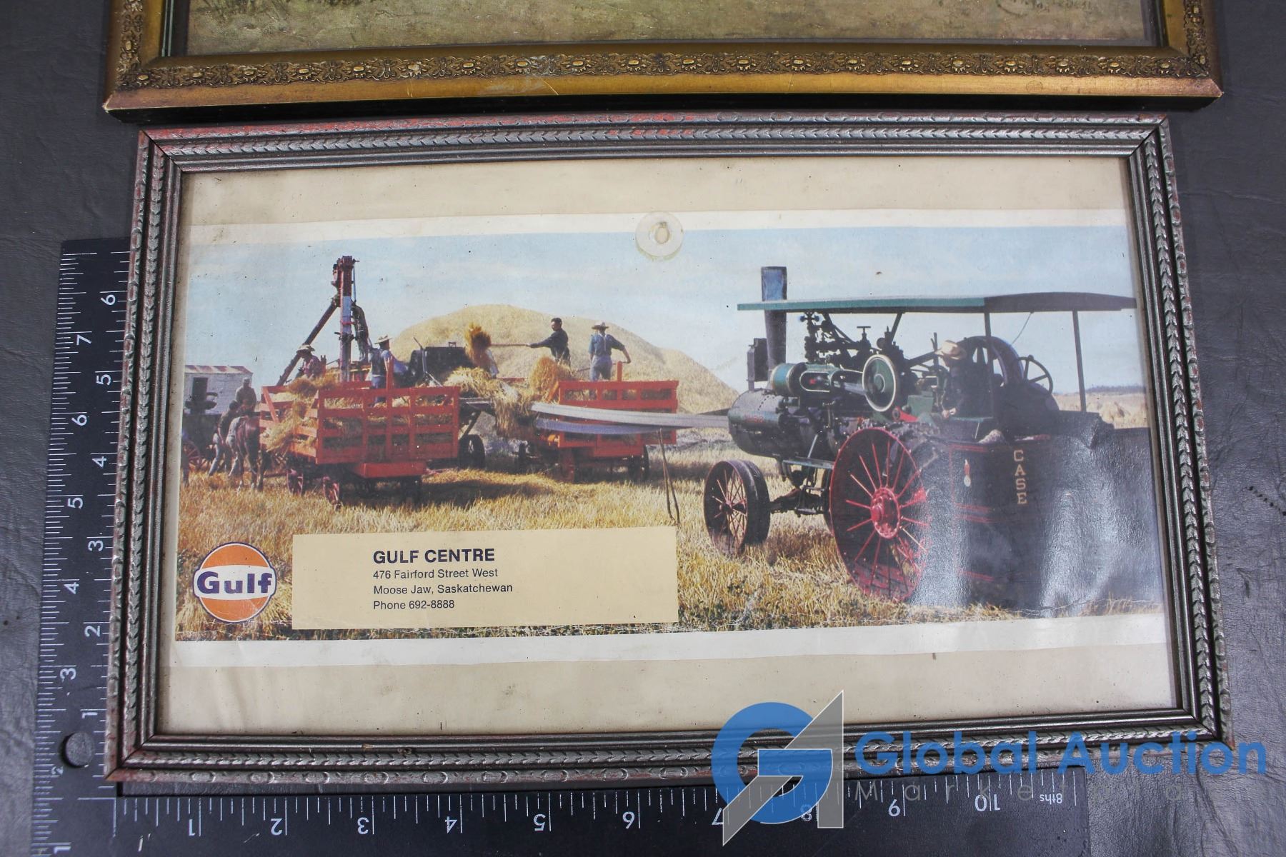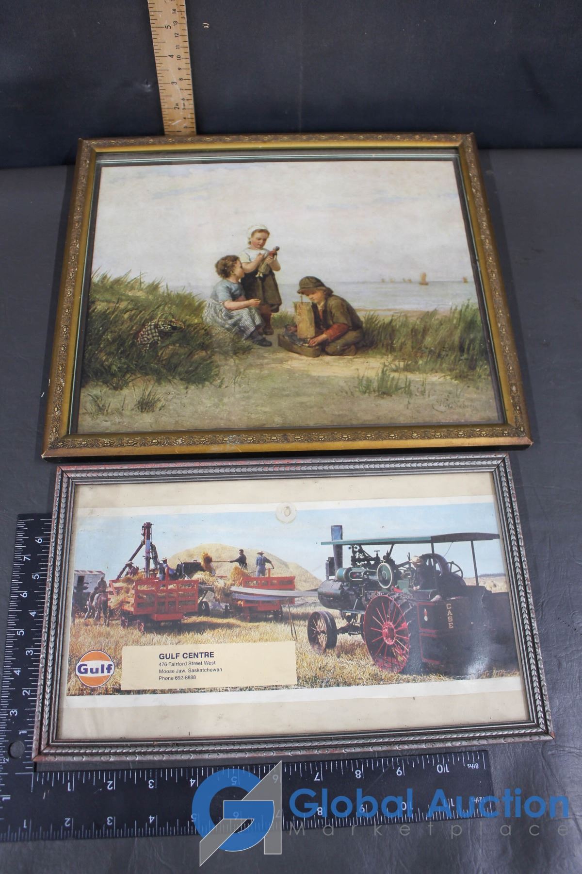 Vintage Framed Beach Photograph & Framed Gulf Agriculture Print