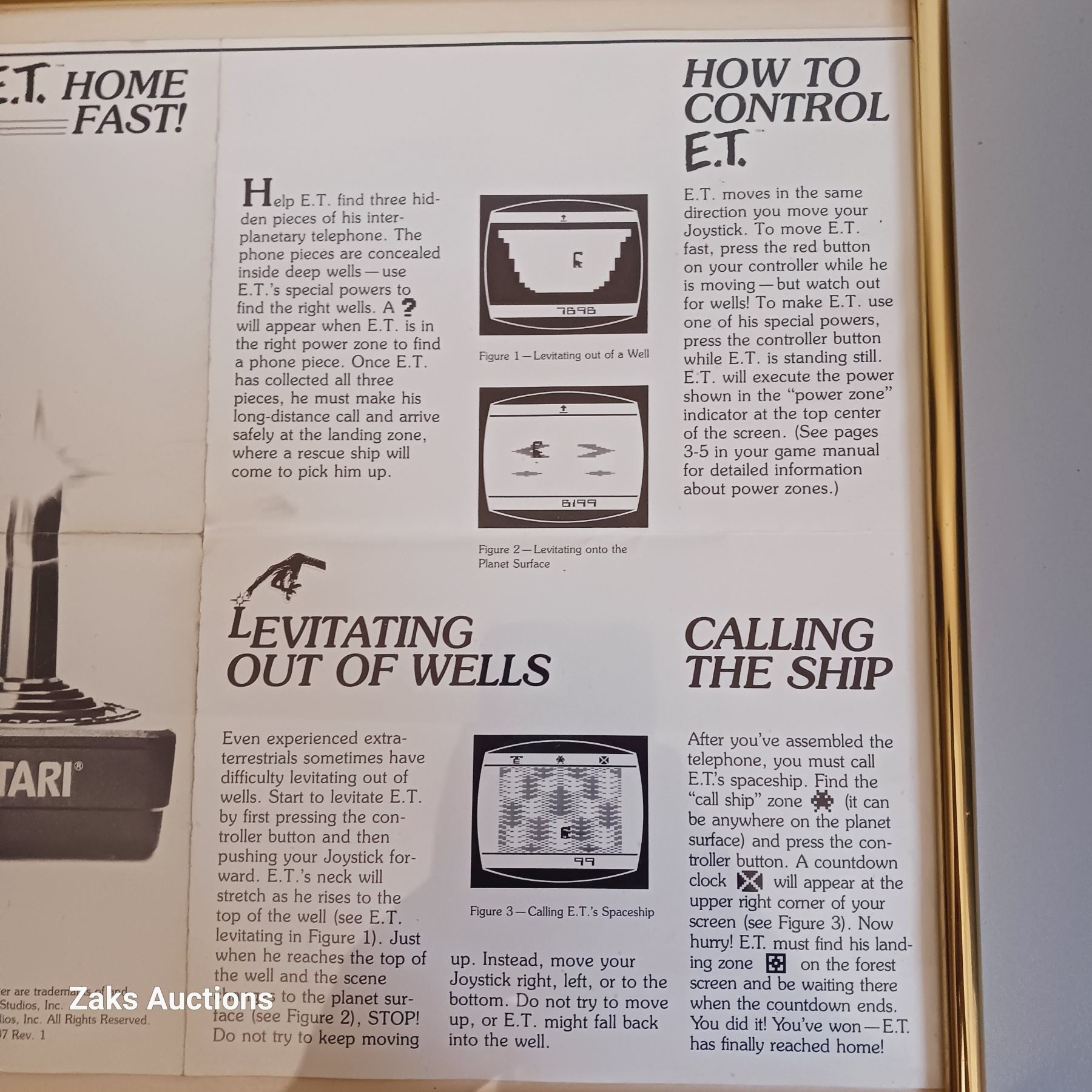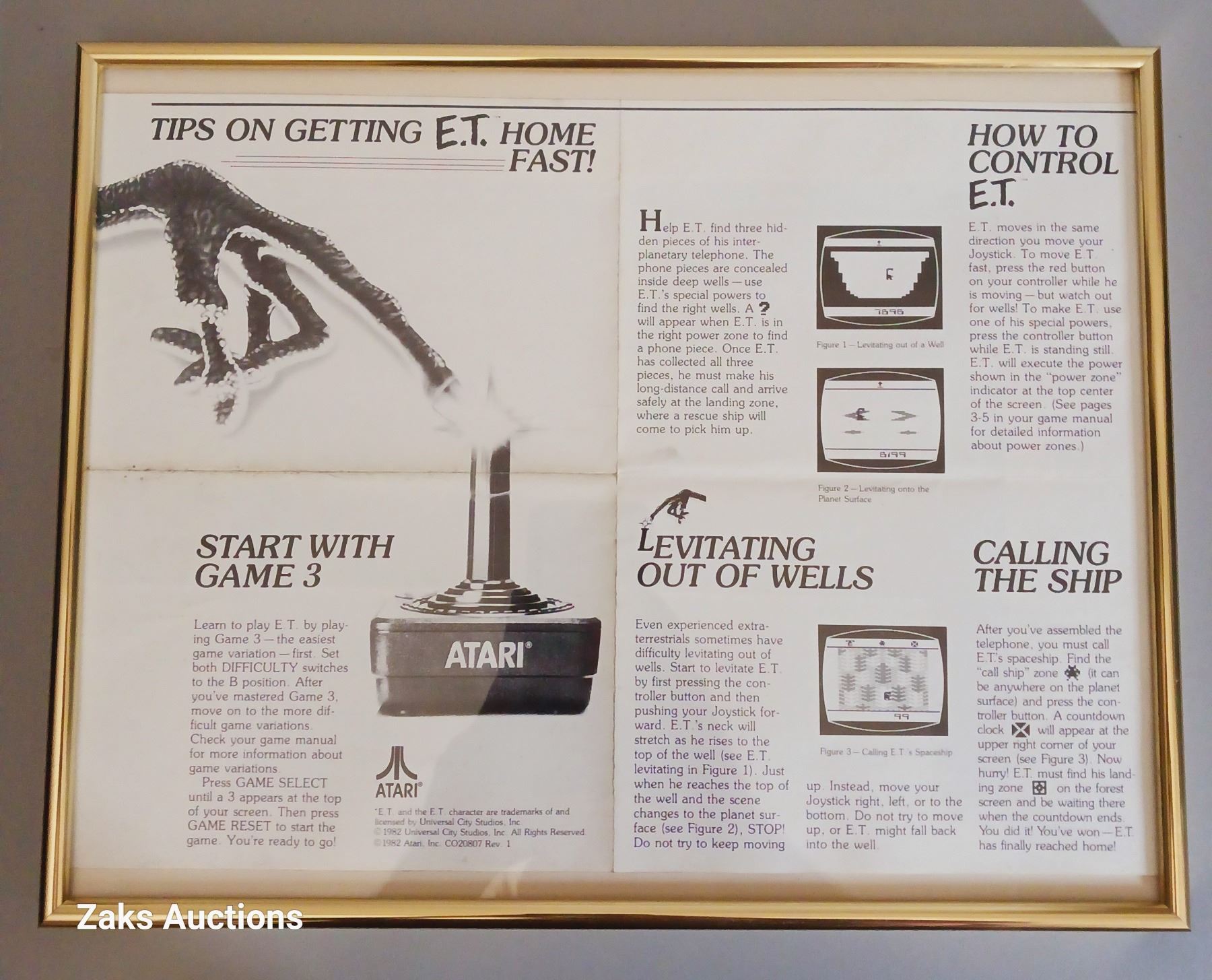 Vintage Framed E.T. The Extra-Terrestrial Atari 2600 Manual Tips On Getting E.T. Home Fast!