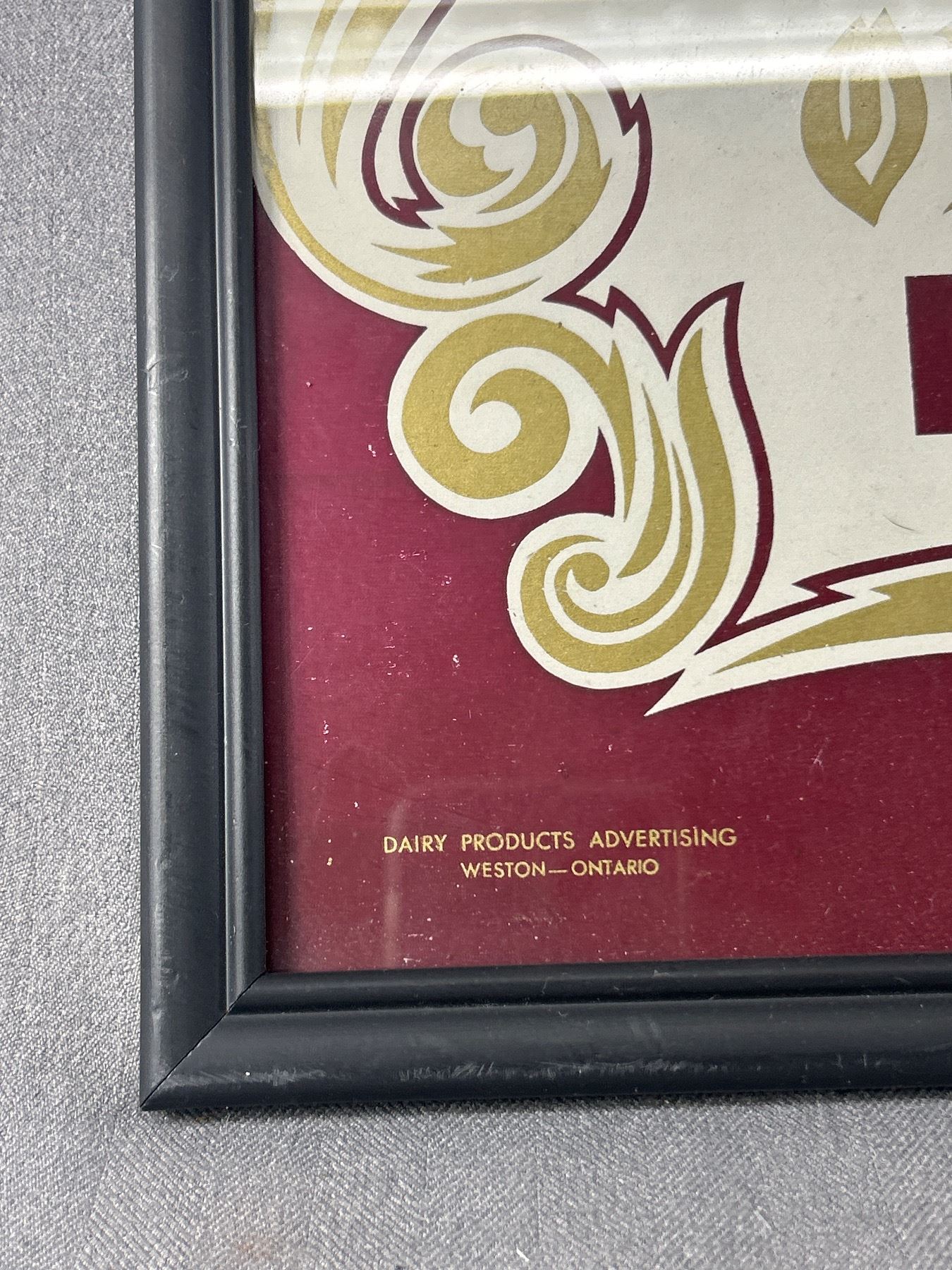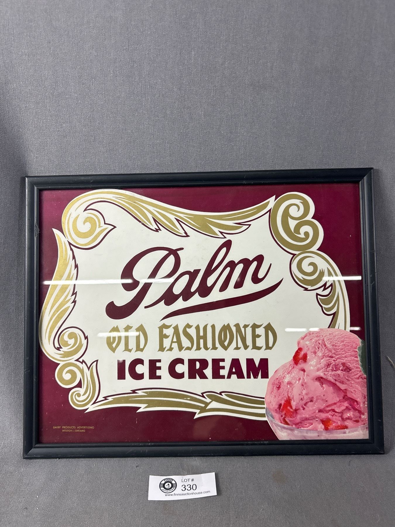 Vintage Framed "Palm Old Fashioned Ice Cream" Advertisement. Approx. 15" x 12"