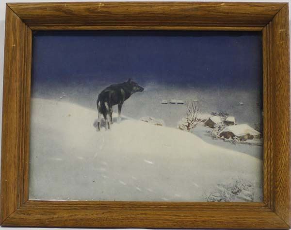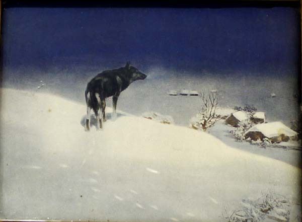 Vintage Framed Print ''The Lone Wolf'' by renowned artist Victor Kowalski, visual measures 12'' x 9'', framed measures 14'' x 11''