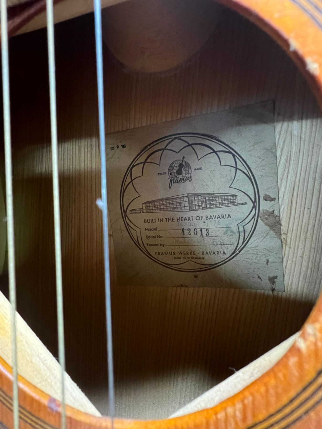 Nice overall condition. Missing one string. Please see photos. Vintage Framus Guitar (approx: 41.5" tall and 15.75" wide)