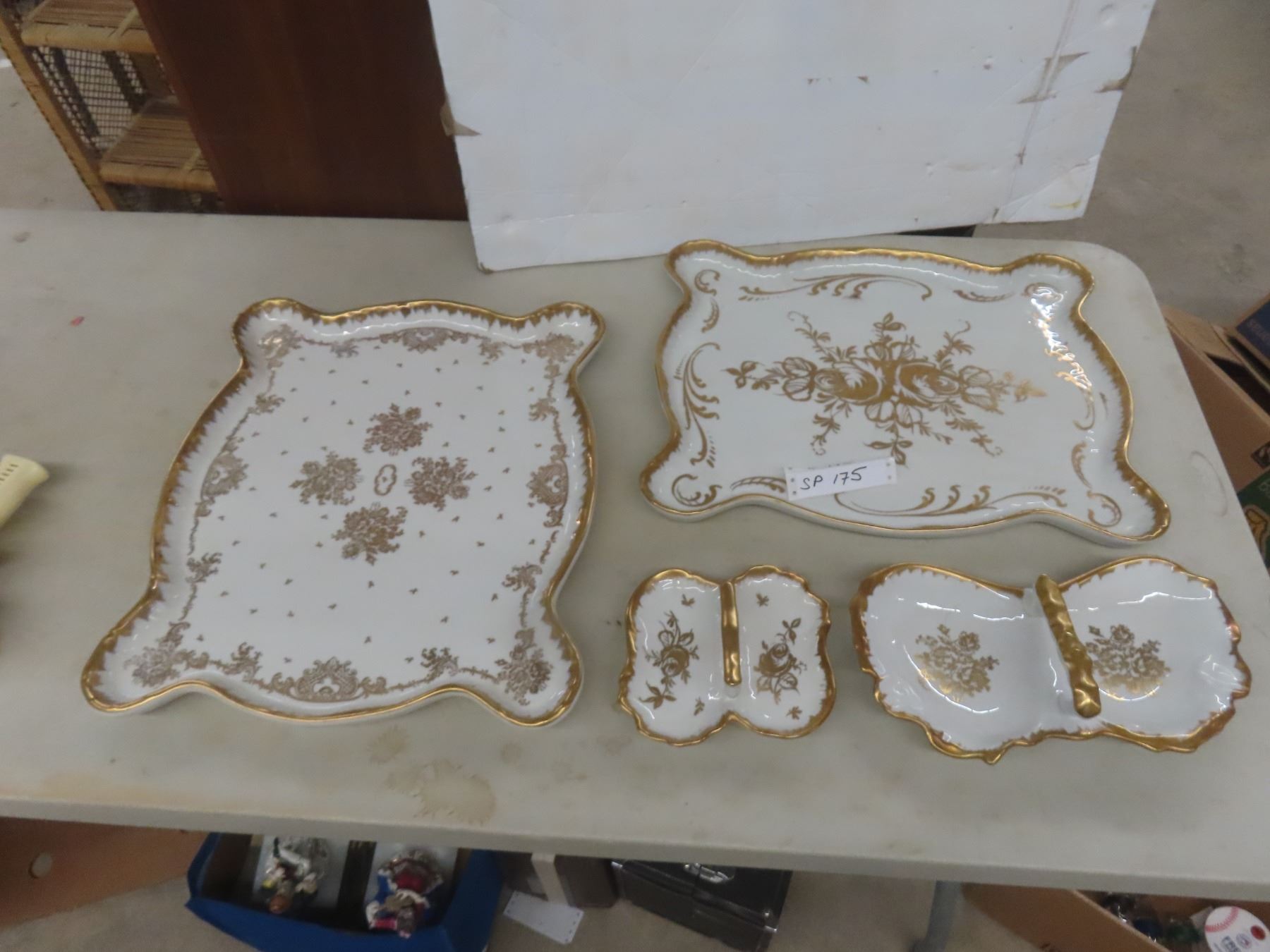 Vintage France Porcelain Serving Pieces: Two Large Trays and Two Divided Serving Trays