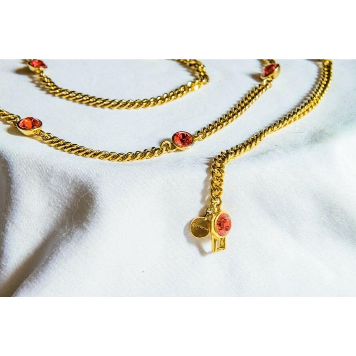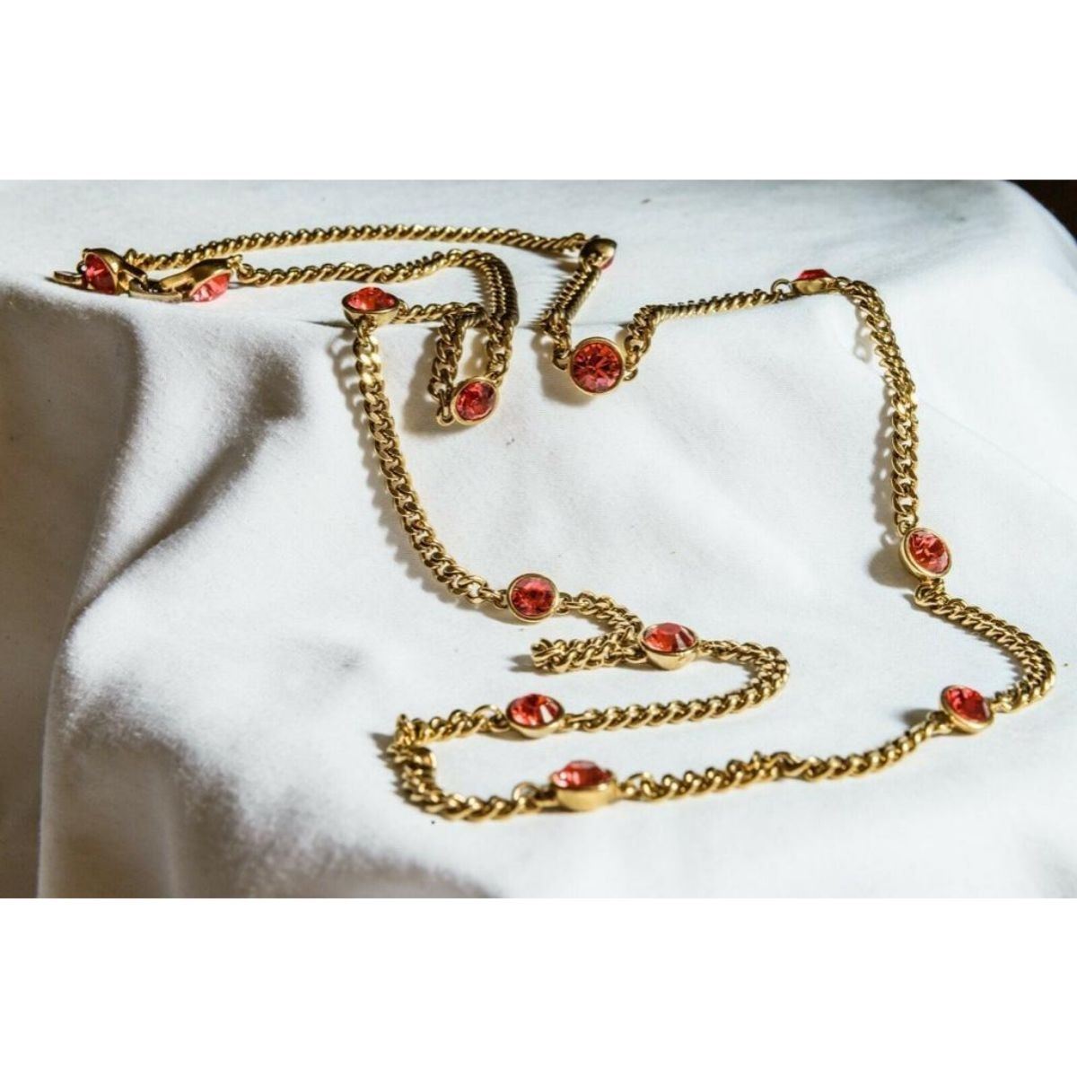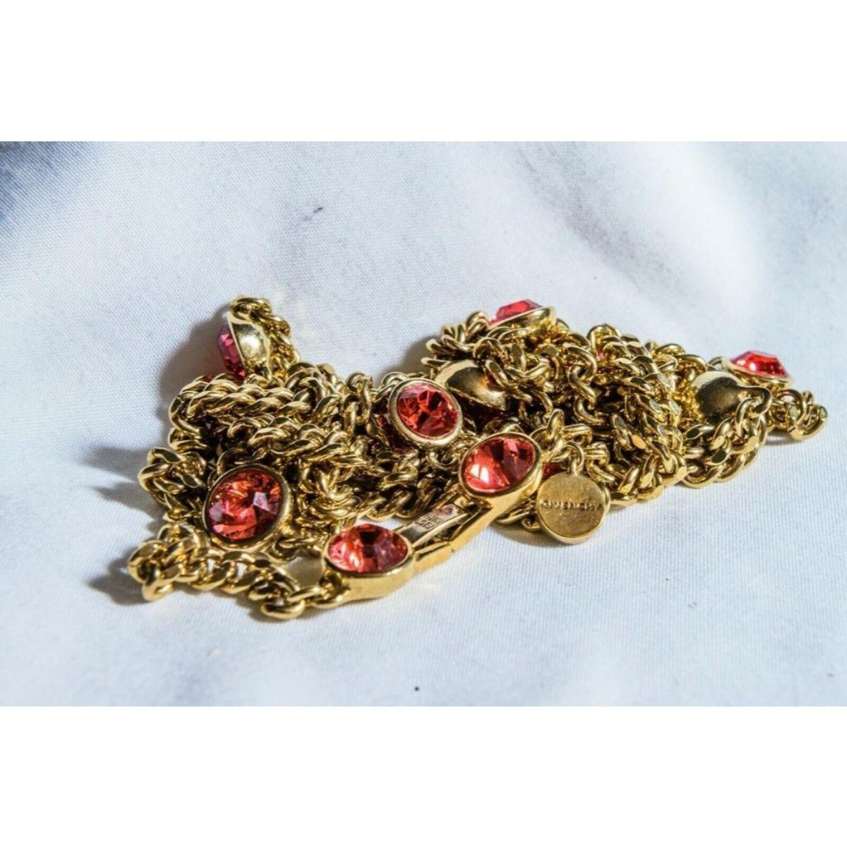 Vintage French Designer GIVENCHY 40" necklace. Gold-tone metal with inset pink crystals. GIVENCHY logo engraved on clasp.