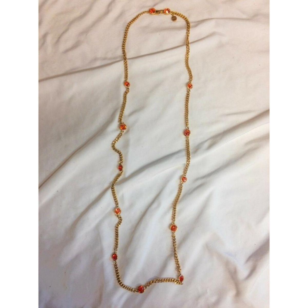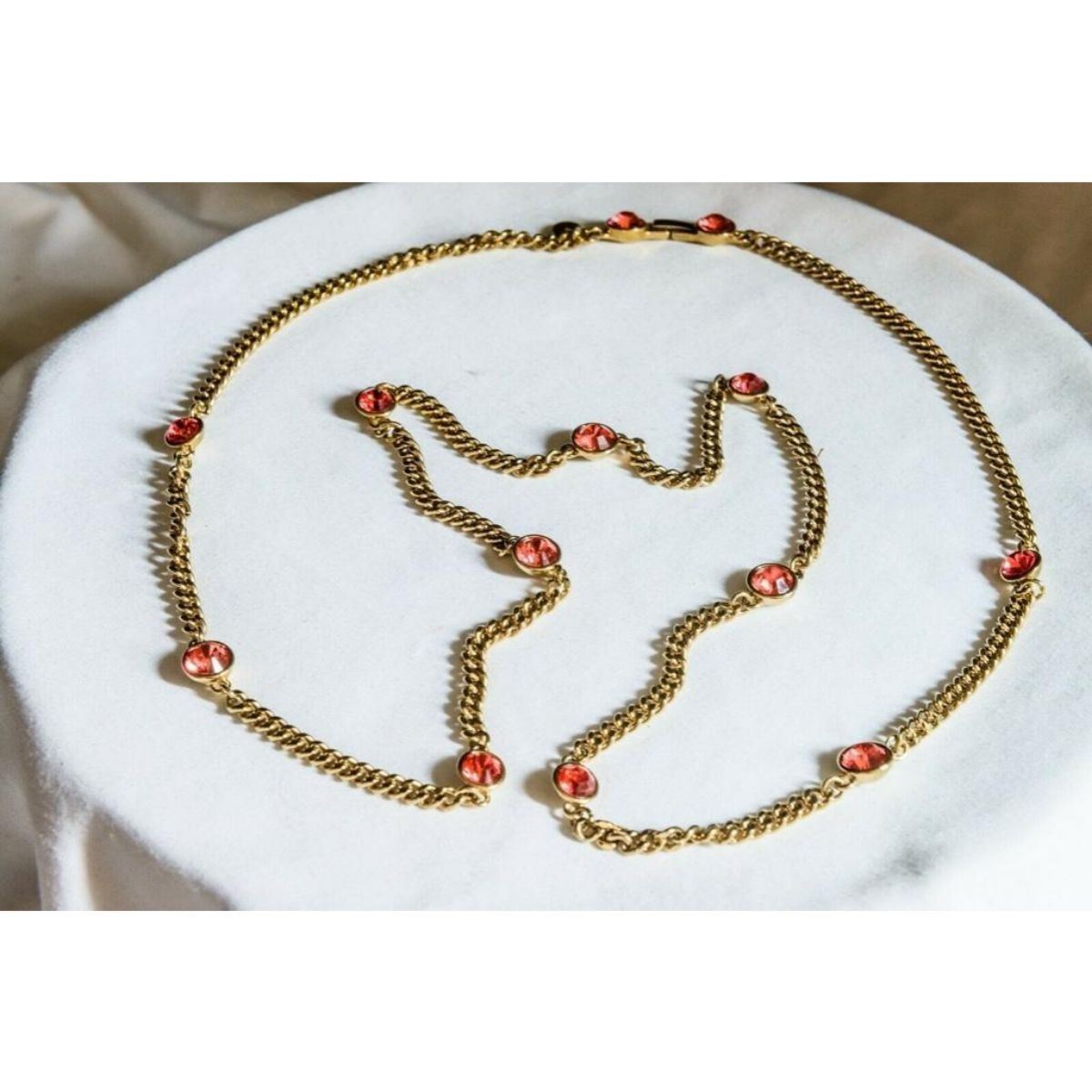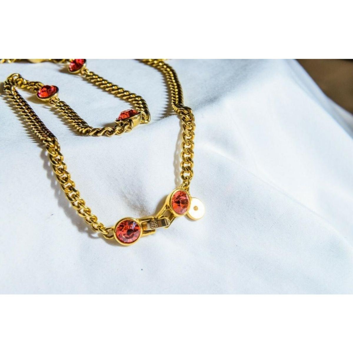 Vintage French Designer GIVENCHY 40" necklace. Gold-tone metal with inset pink crystals. GIVENCHY logo engraved on clasp.