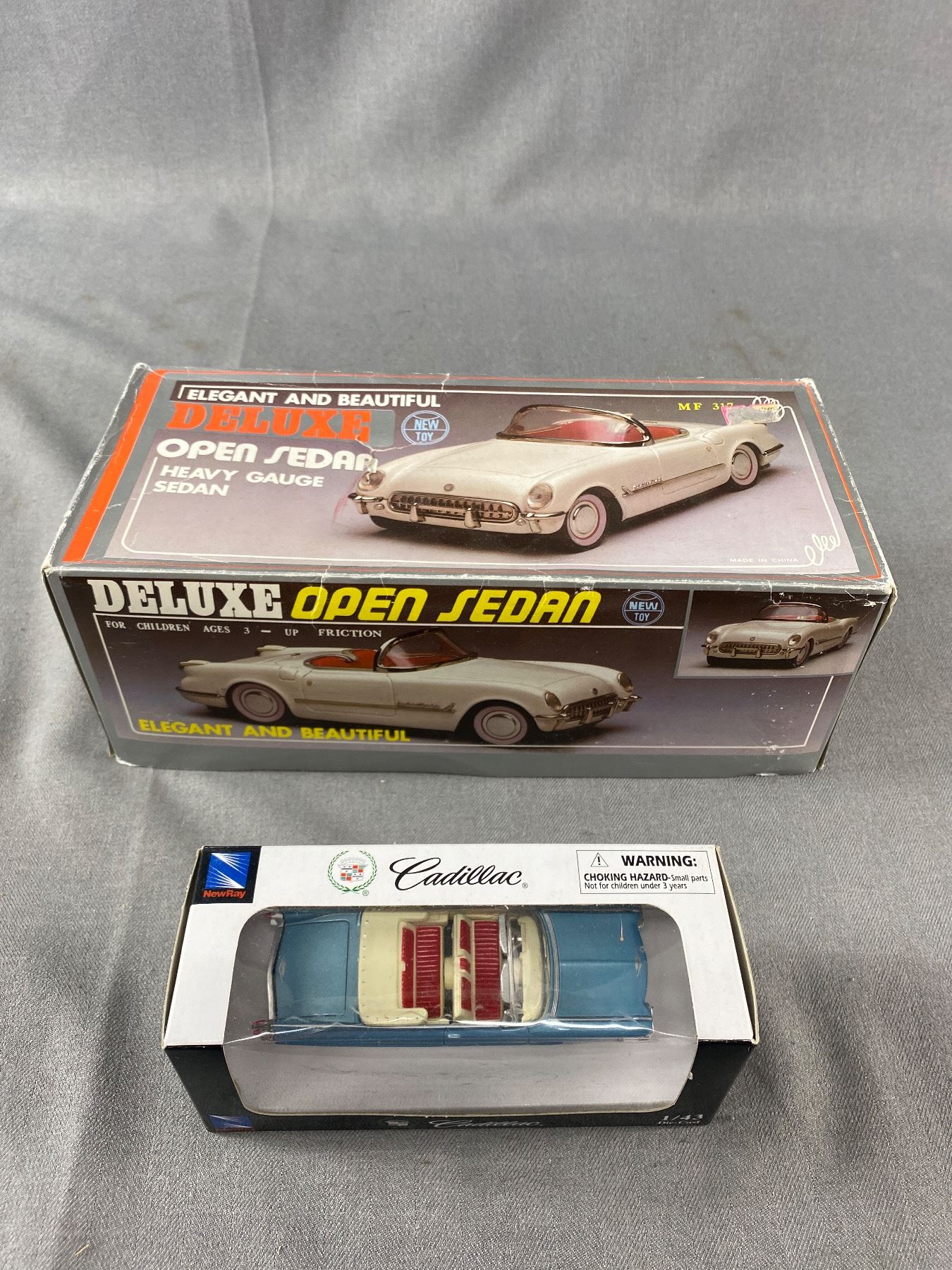 Vintage Friction Deluxe Sedan + 1/43rd Scale Cadillac in Original Boxes