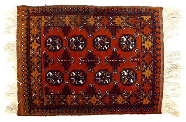 Vintage Fringed Persian Rug, measures 17.5'' x 20.5''