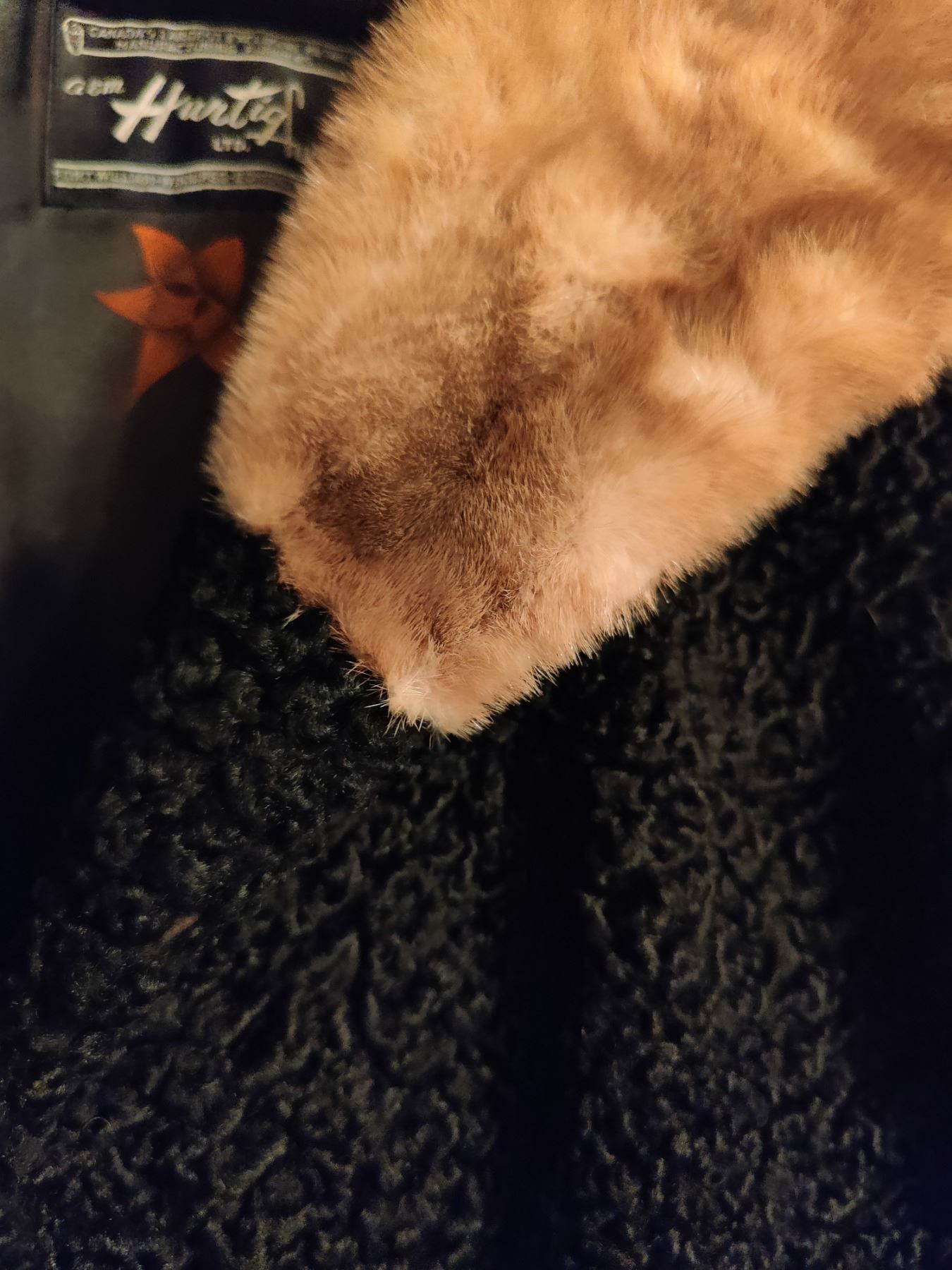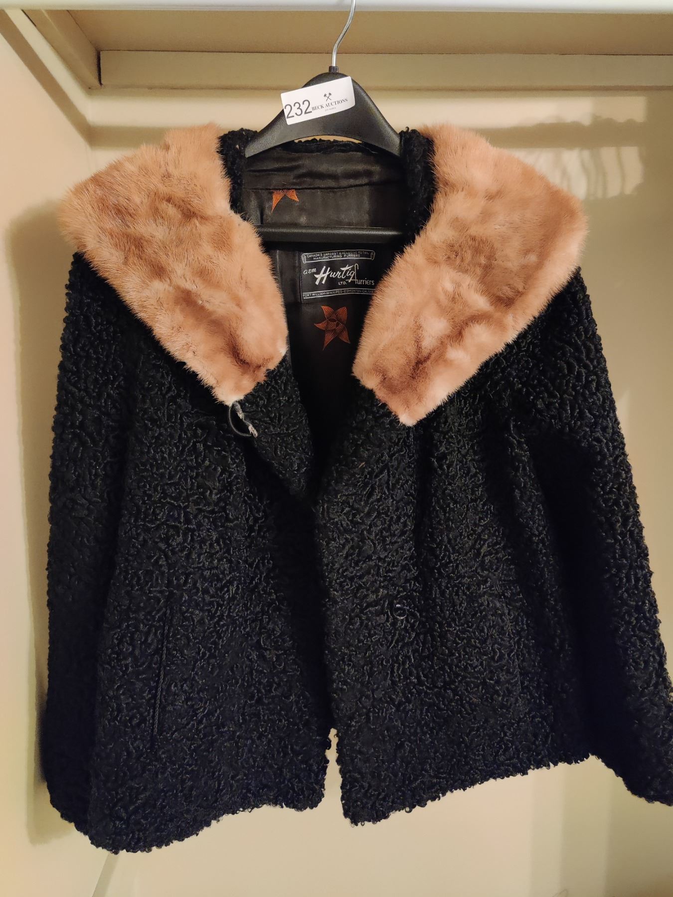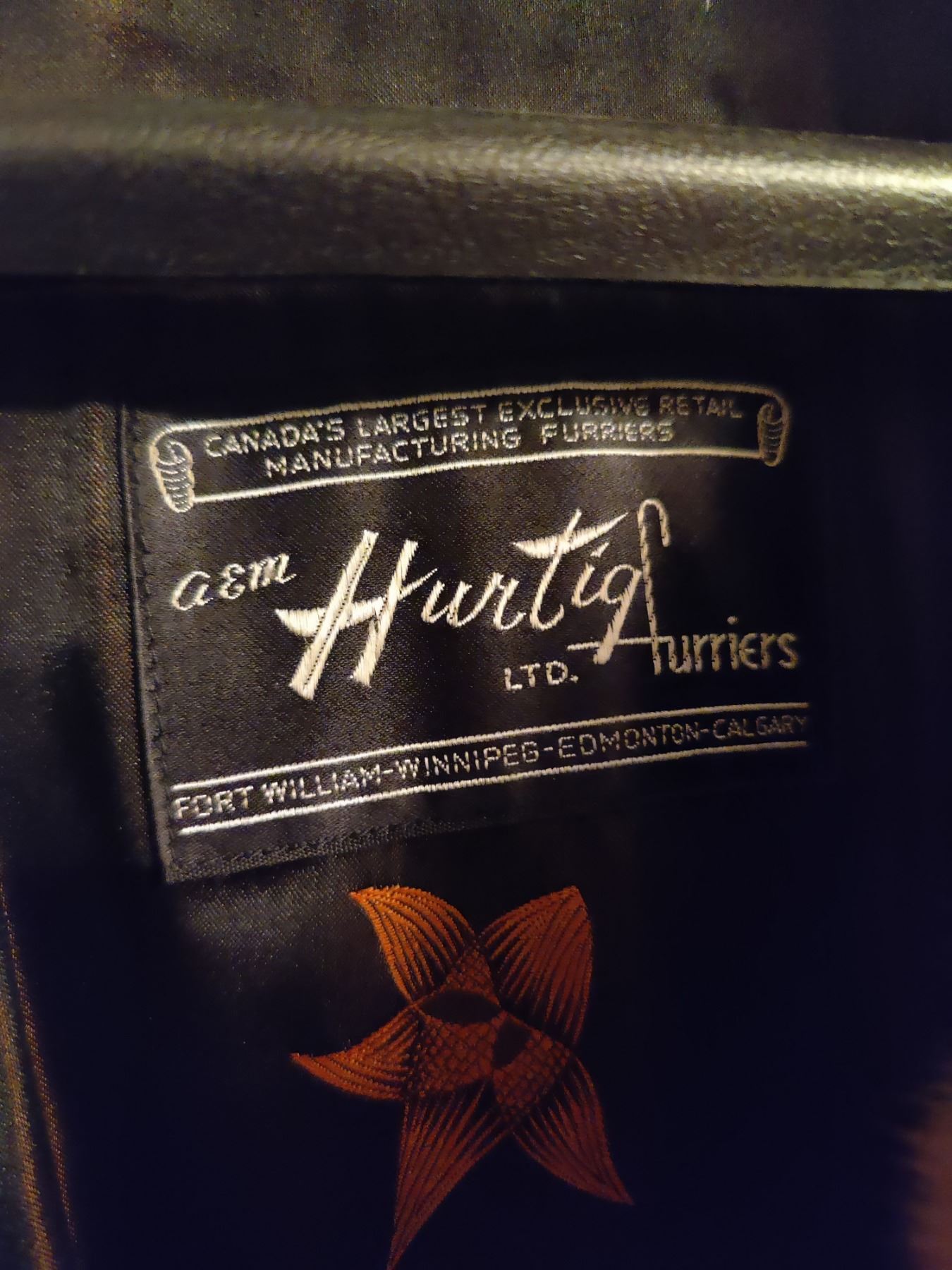 "A& M Hurtig Furries LTD." Made in Canada. Fur collar and unknown material for jacket.