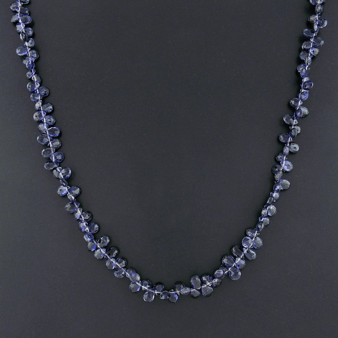 Vintage GIA Tear Drop Briolette Iolite Strand Necklace w/ 18k Gold Toggle Clasp