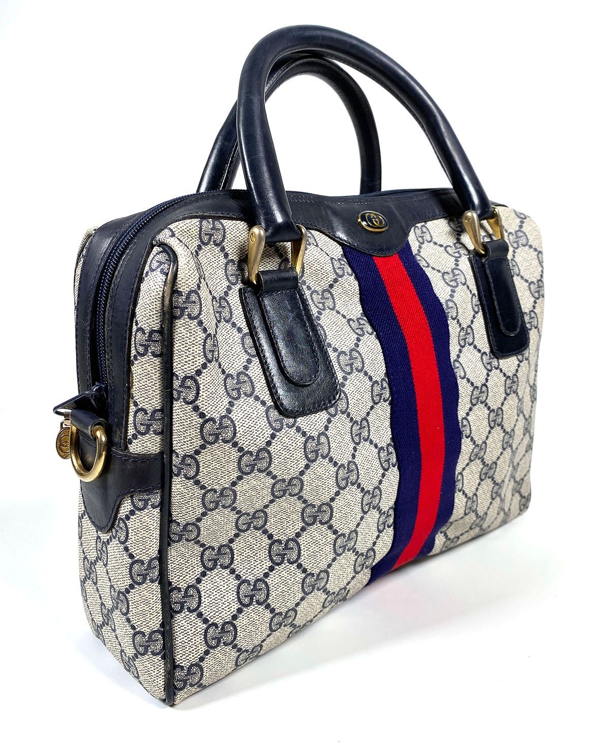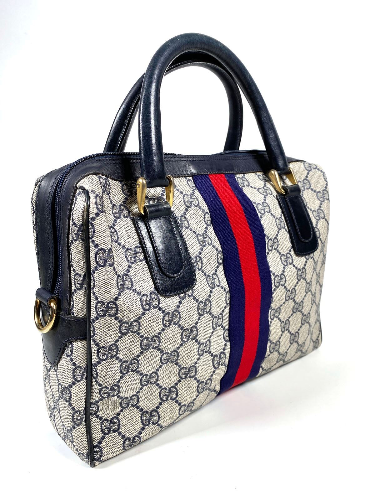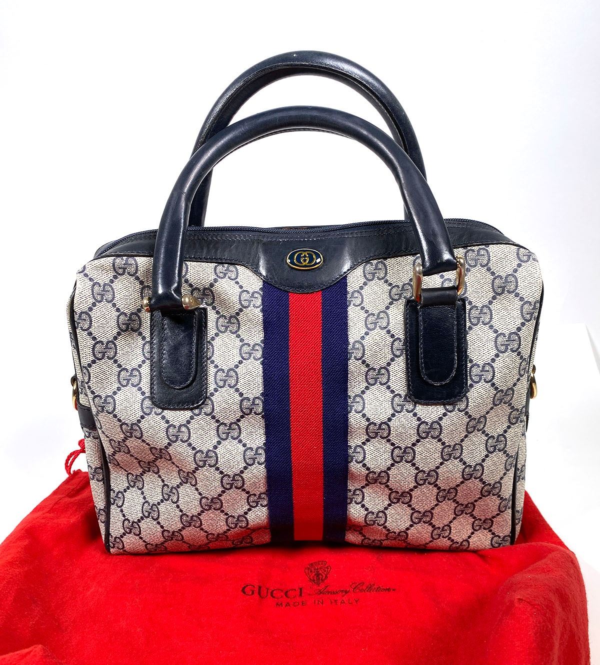 Vintage Gucci Boston monogrammed hand bag or purse with red Gucci dust or storage bag. Bag measures approx. 11 1/2" long. Hand bag is in good condition with normal to light wear on the exterior and interior. No holes, rips, stains or ink marks. Zipper works properly. Bag is does not have shoulder strap. See photos for more details on condition. PLEASE NOTE: This item is unconditionally guaranteed authentic, without reservation or time limit.