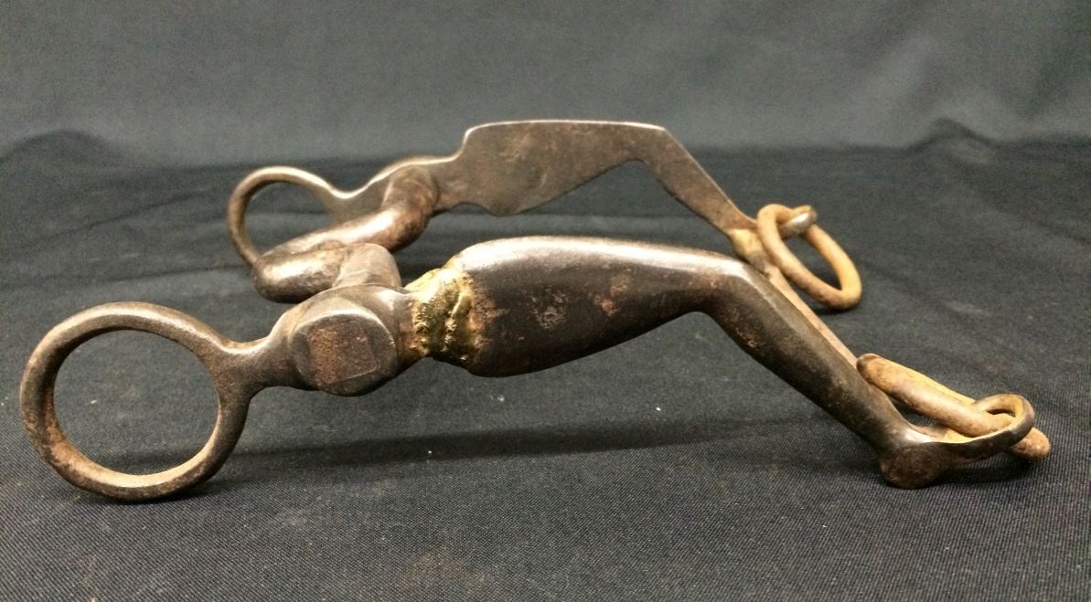 This old lady leg bit has a 5” mouth piece with a medium port. Shanks are just under 9” from top of purchase ring to bottom of the rein ring. Has been repaired on one shank, please see pics, otherwise in good vintage condition. Shipping: There will be a $5 handling / packaging fee for shipping this lot. The actual cost of postage will be added on top of that.