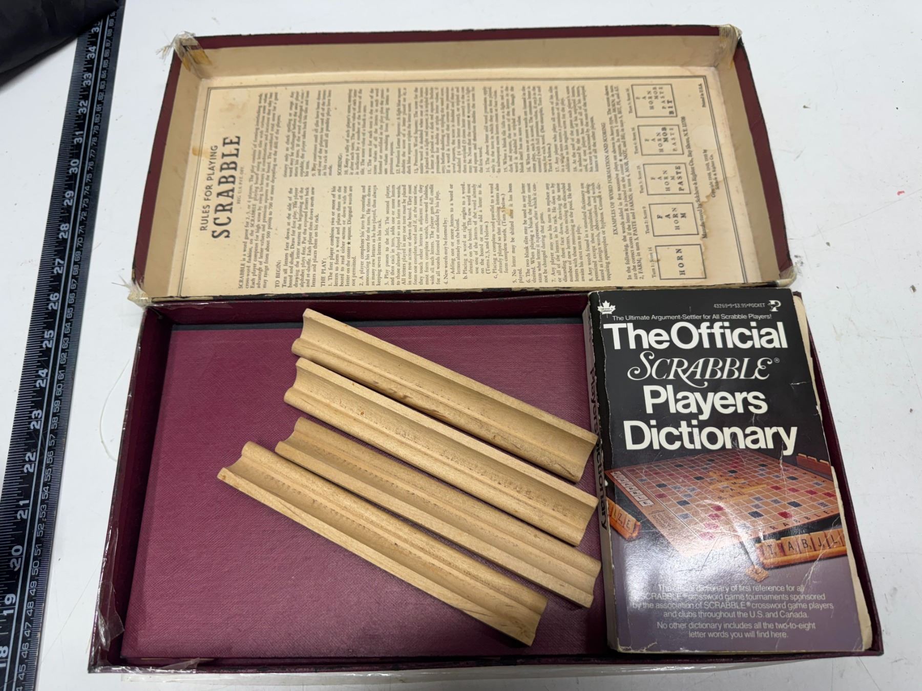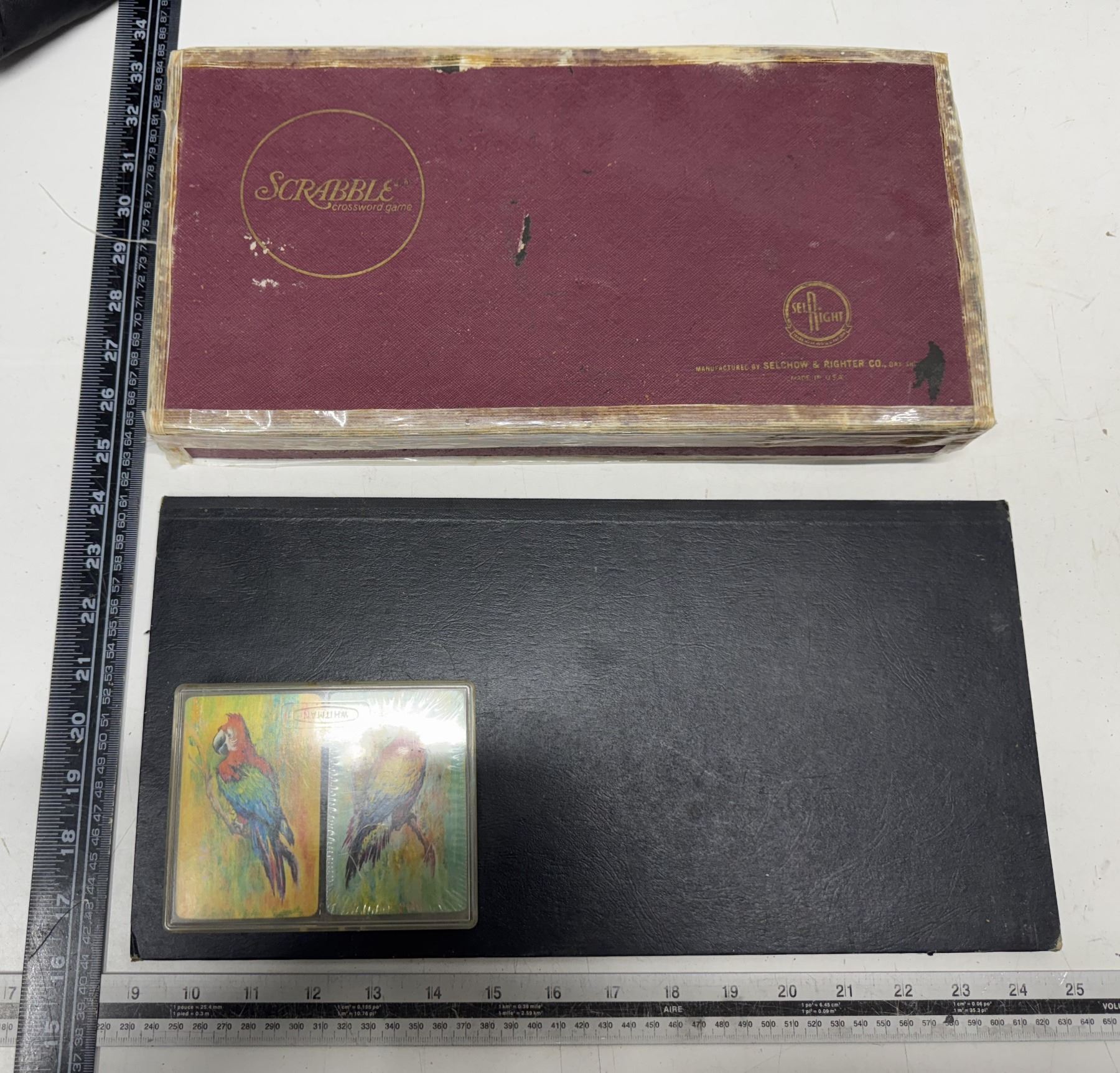 Vintage Game Scrabble, Checker Board, Playing Cards.