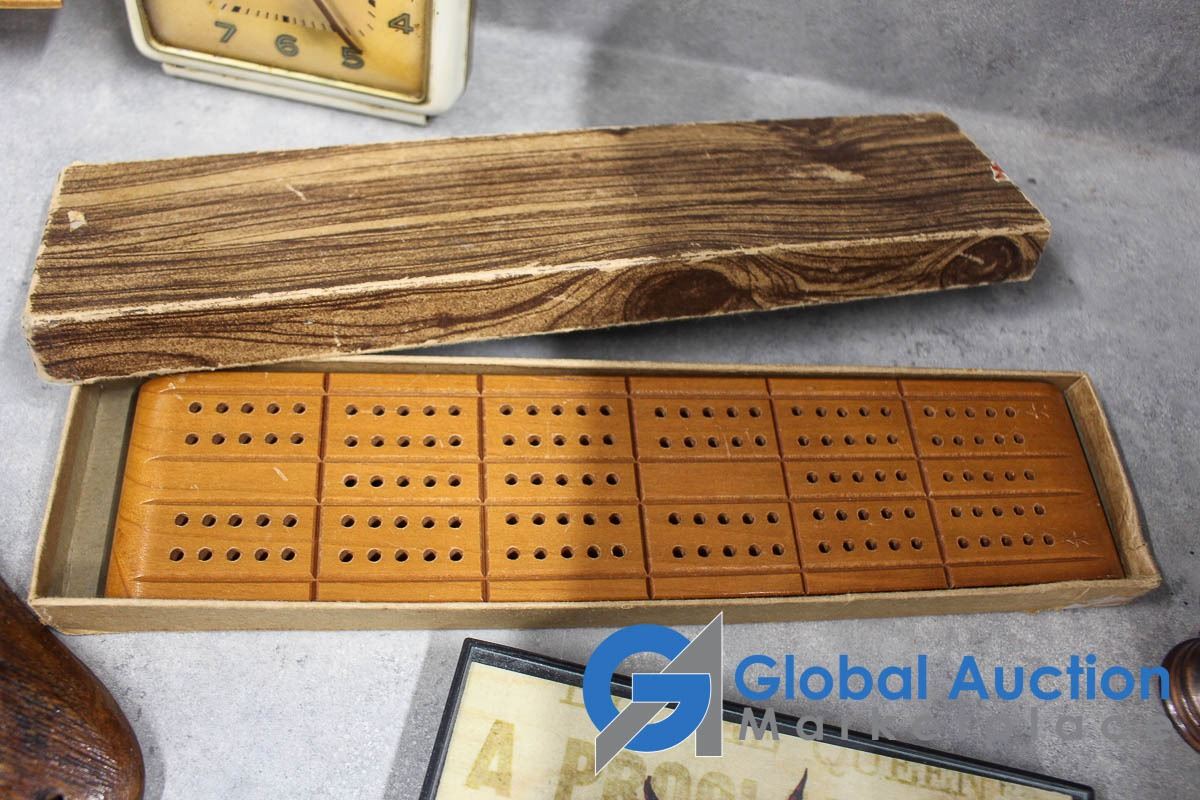 Vintage Games, Clock, Tin, Pensil Shapeners, etc
