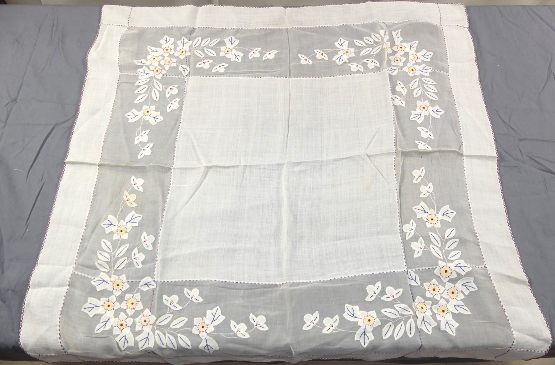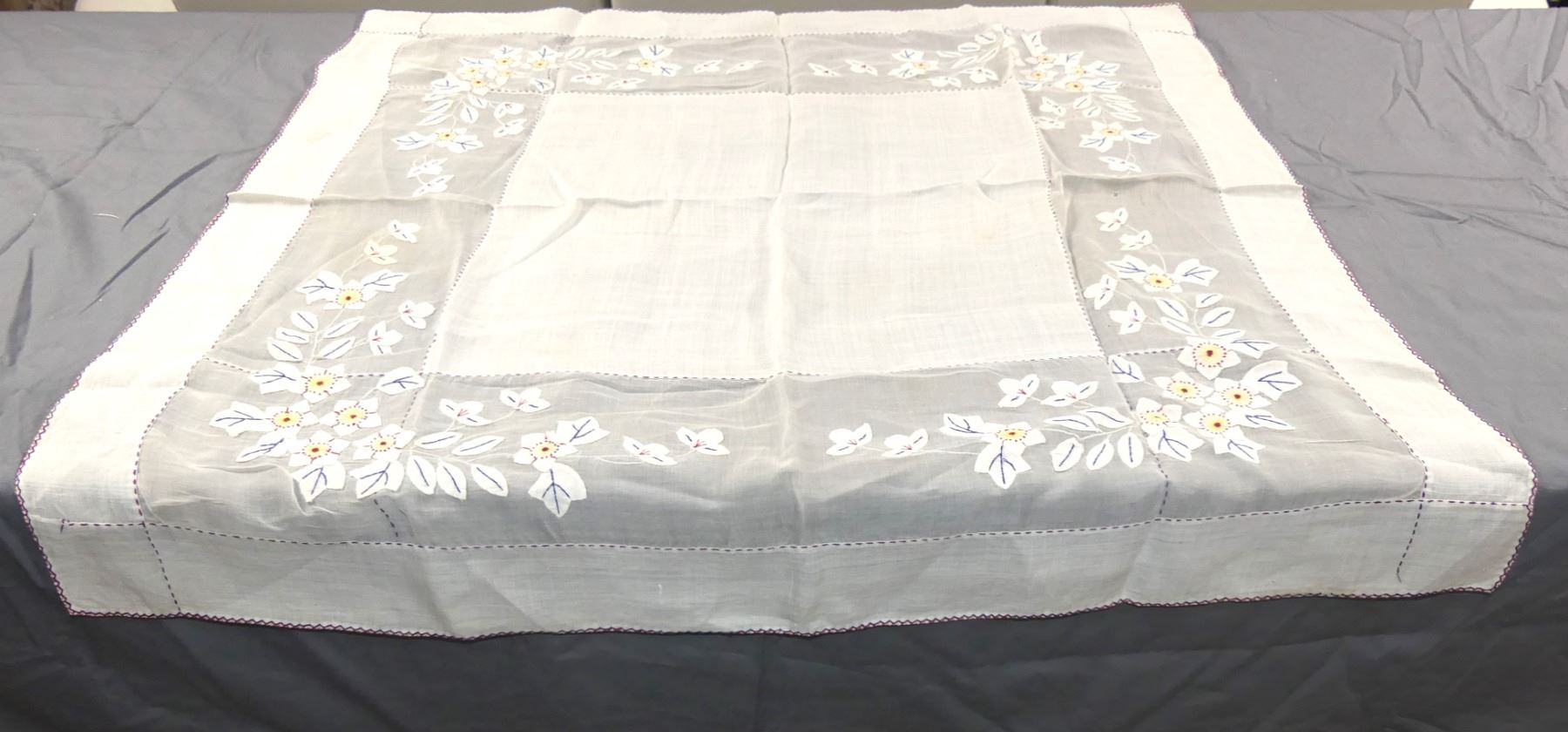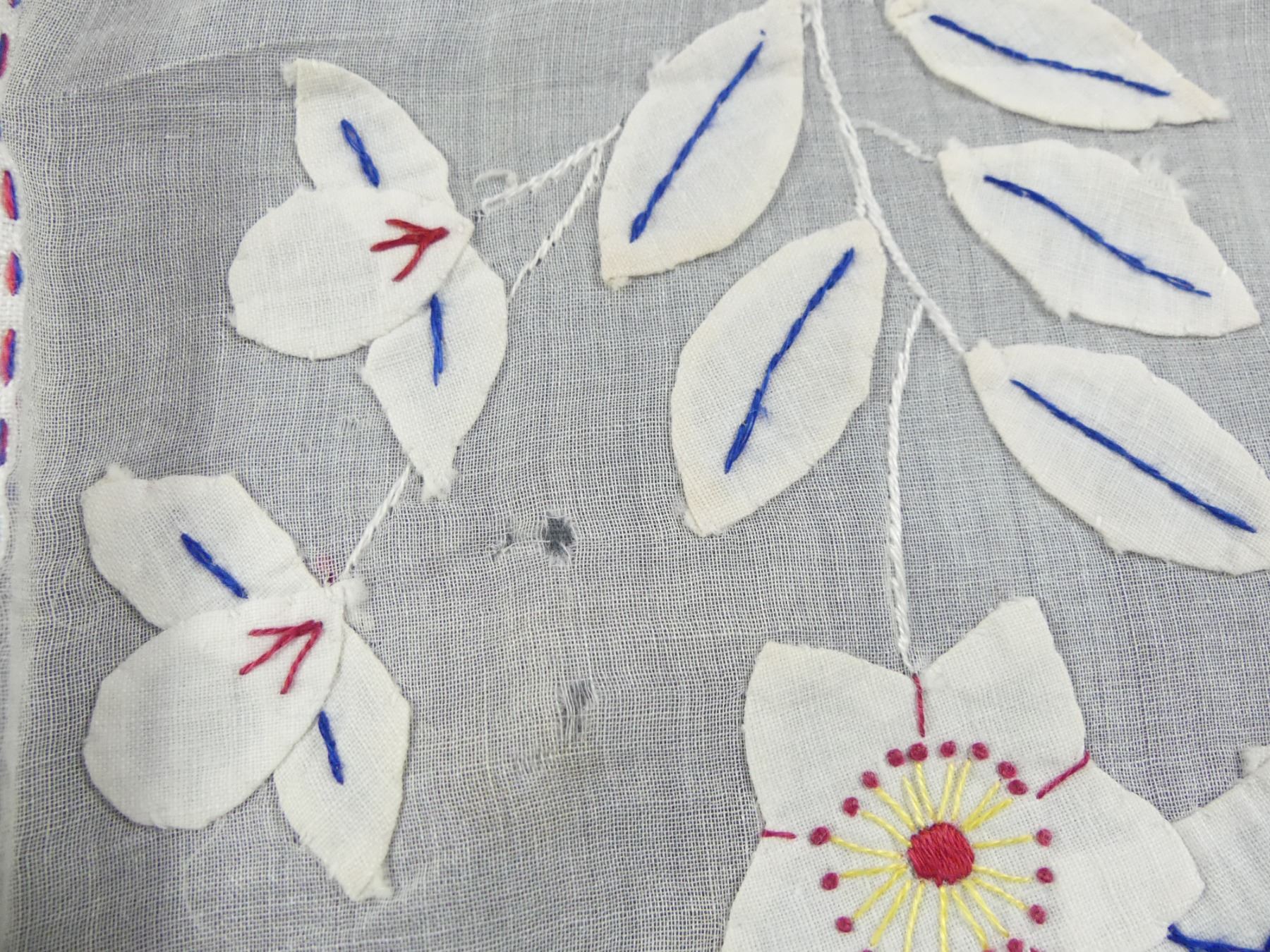 Vintage Gauze Tablecloth with Applique & Embroidery