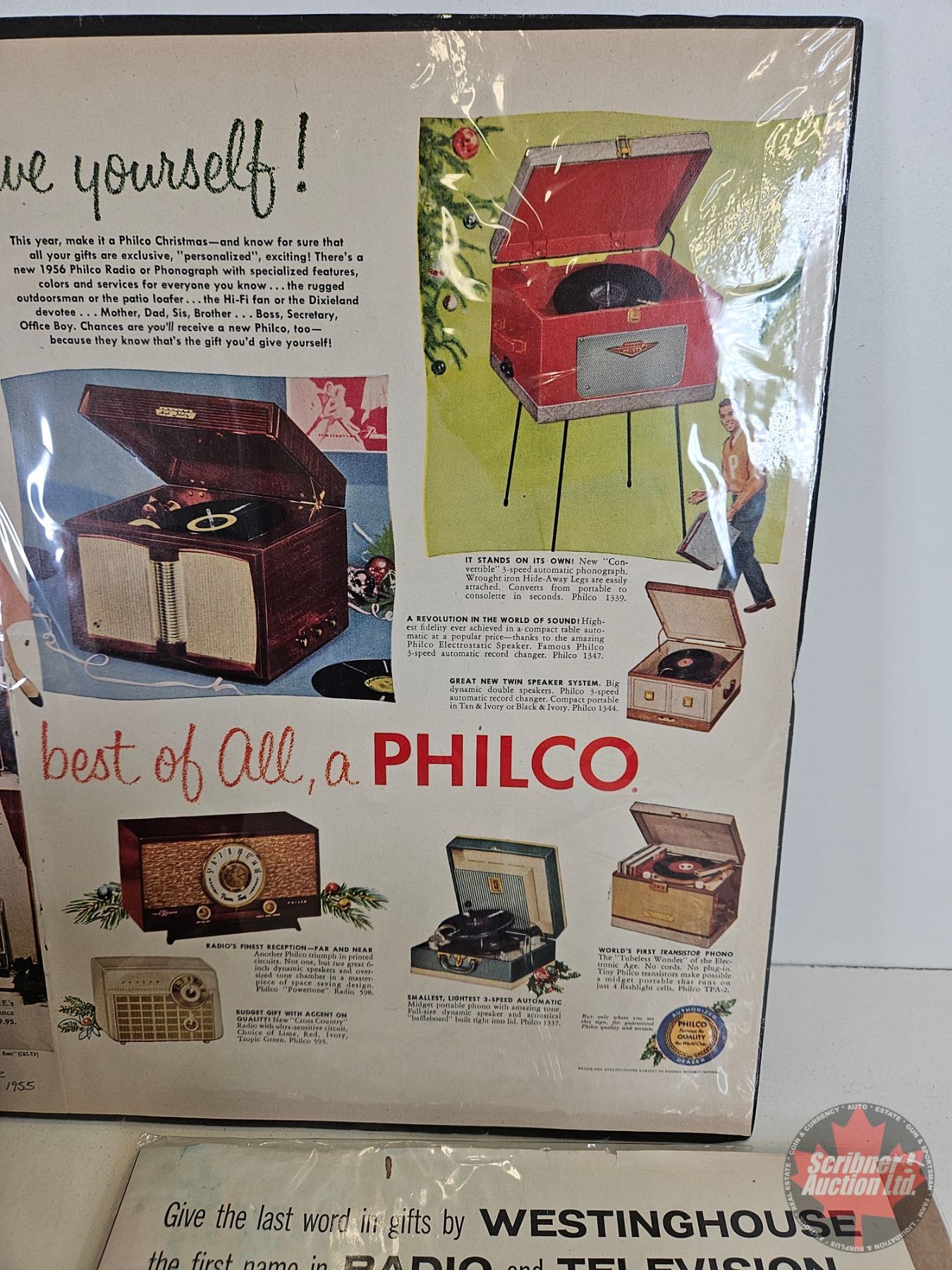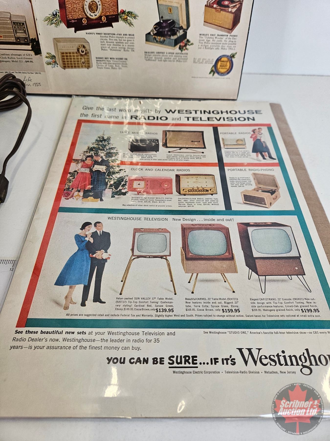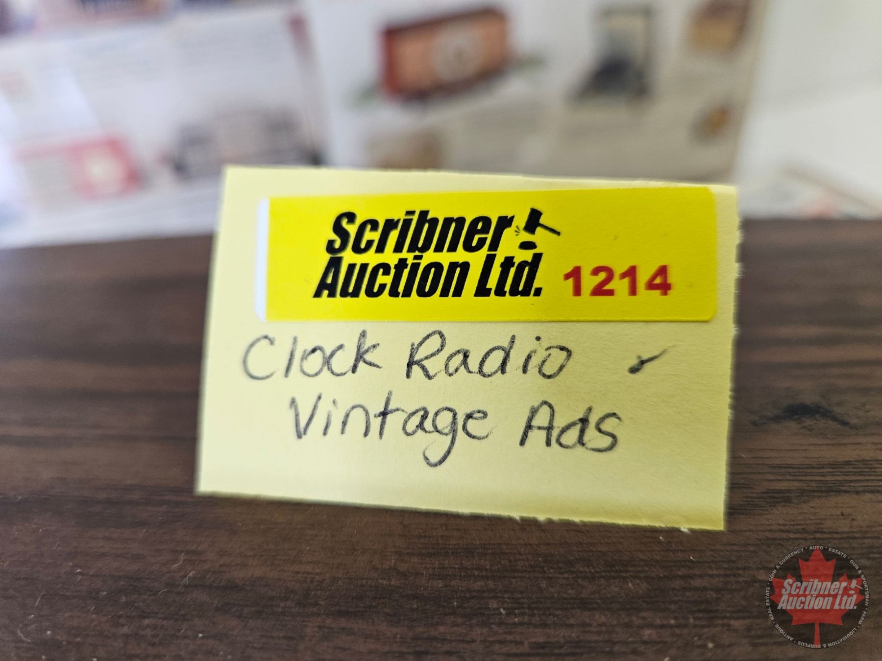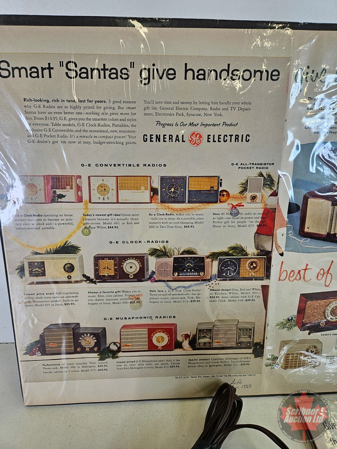 Vintage General Electric Clock Radio w/Radio Magazine Ads (2)