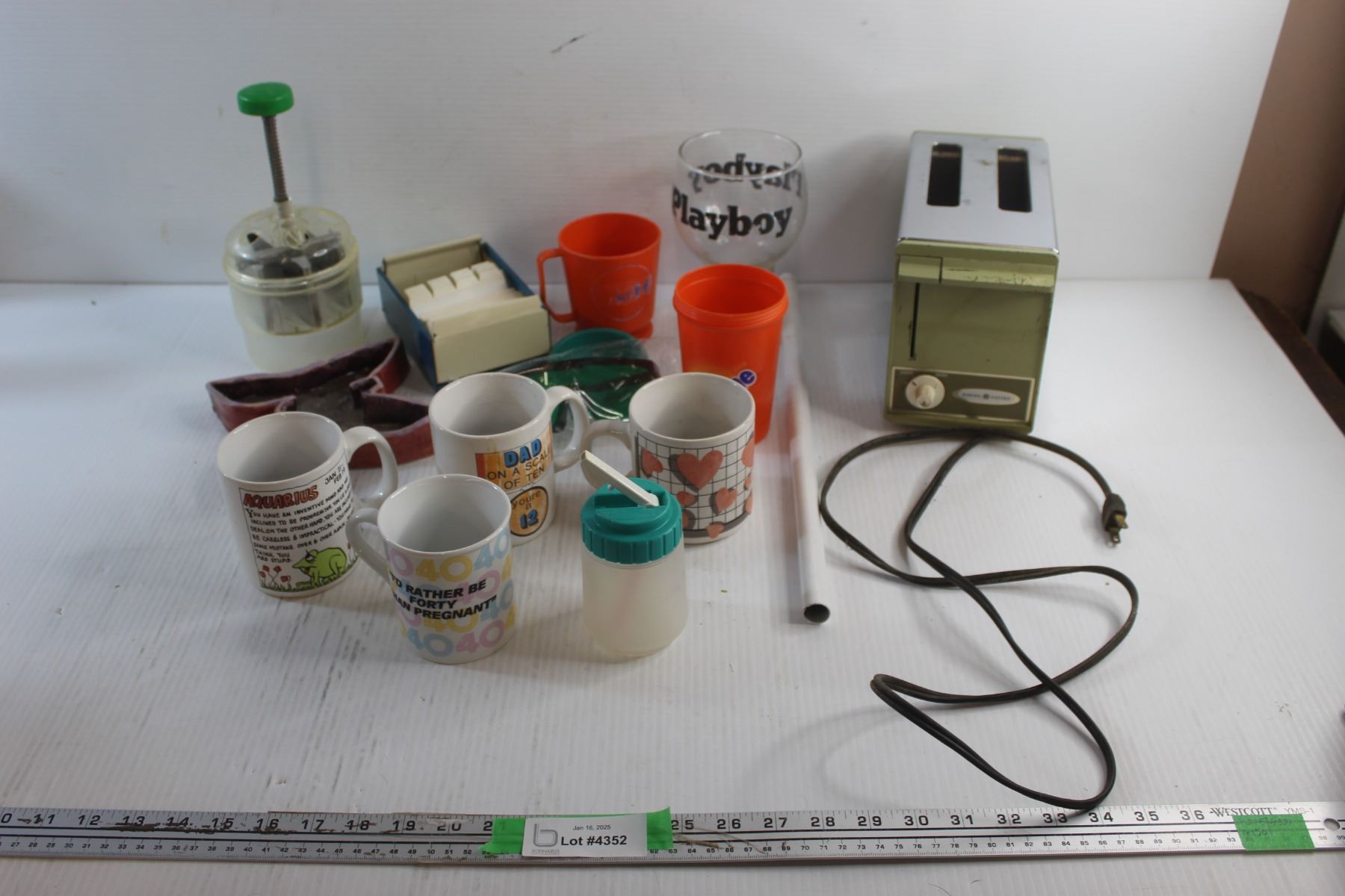 Vintage General Electric Toaster - As Is, Mugs, Cups, Safety Goggles and Onion Cutter