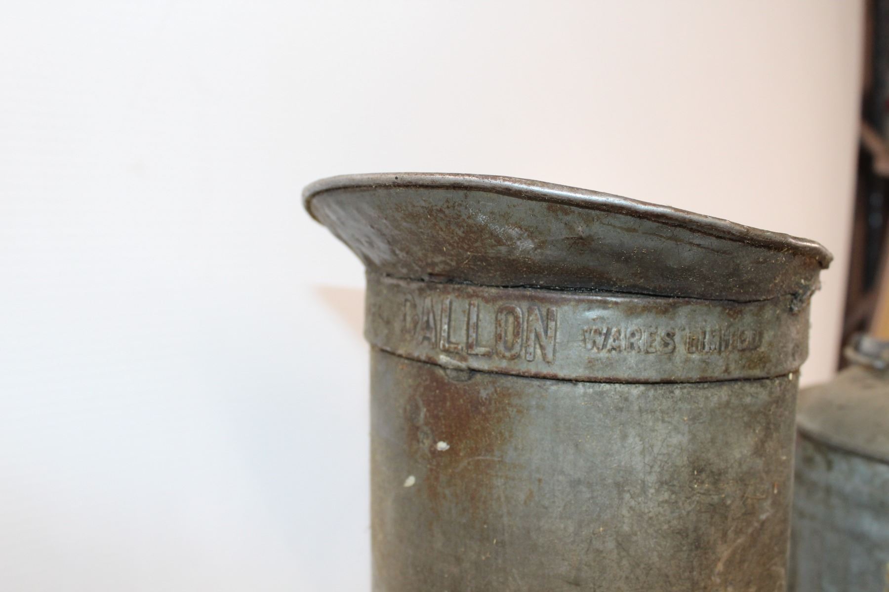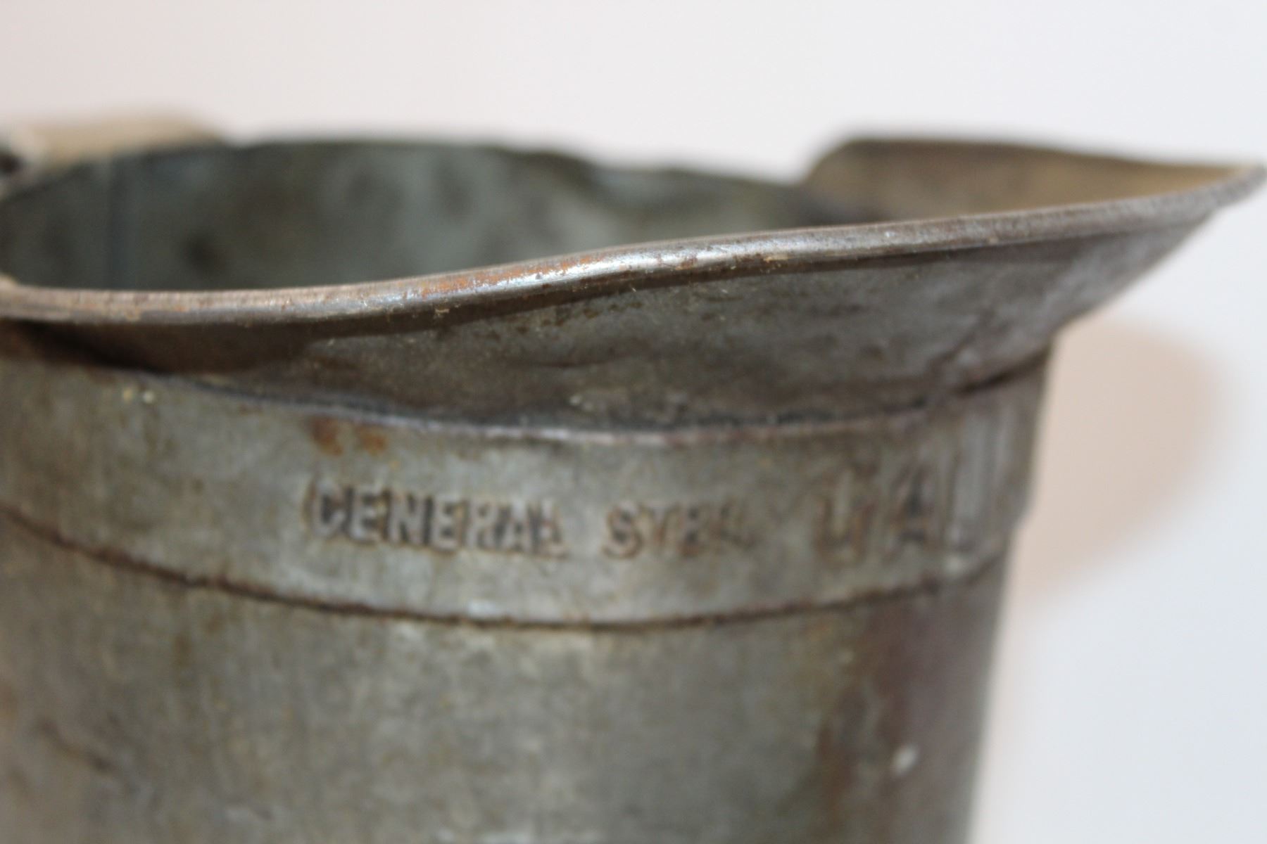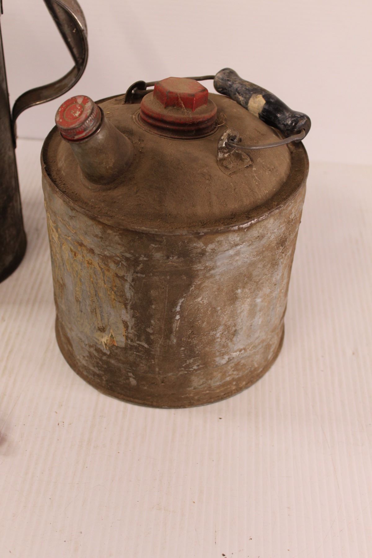 Vintage General Steel Oil Jug, Filter Wrench & Small Fuel Can - (2) Plastic Funnels Included