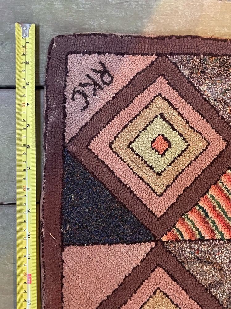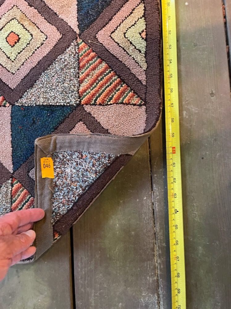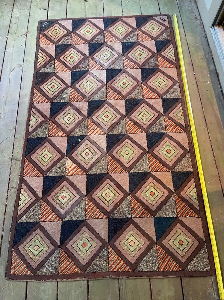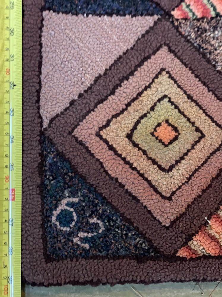 Vintage geometric pattern handmade hooked rug