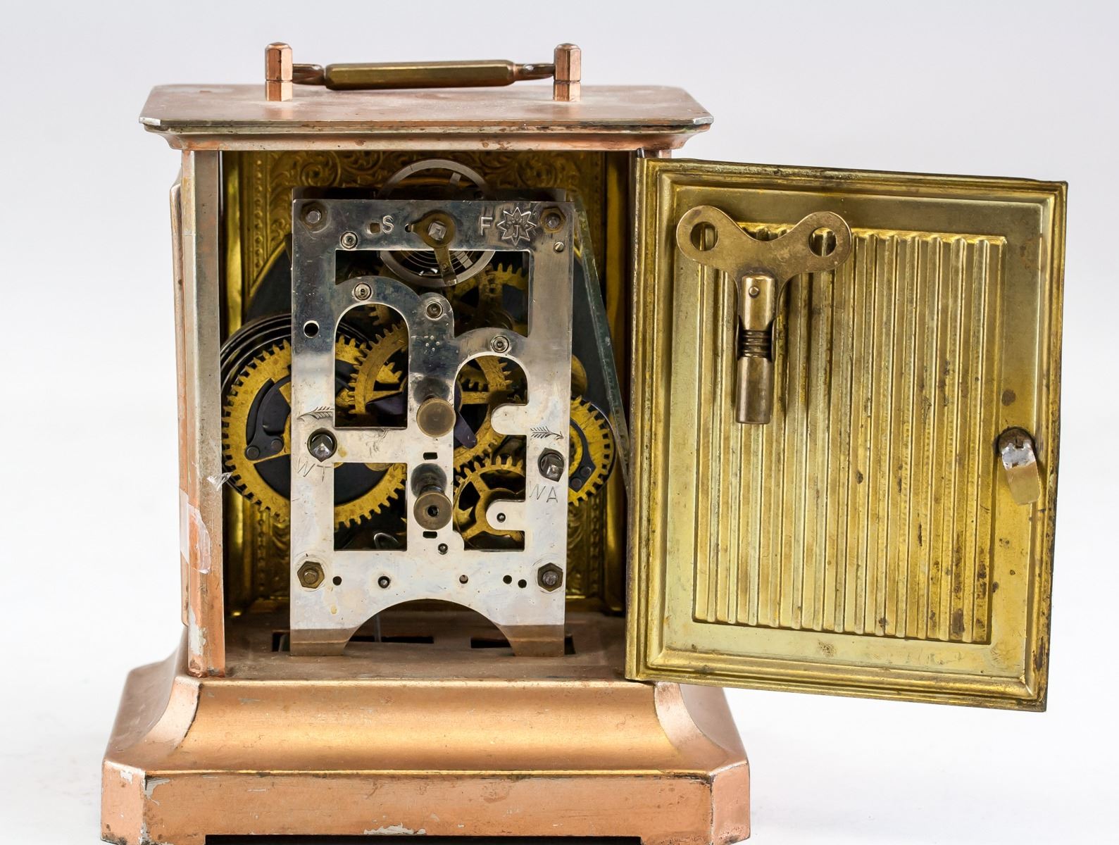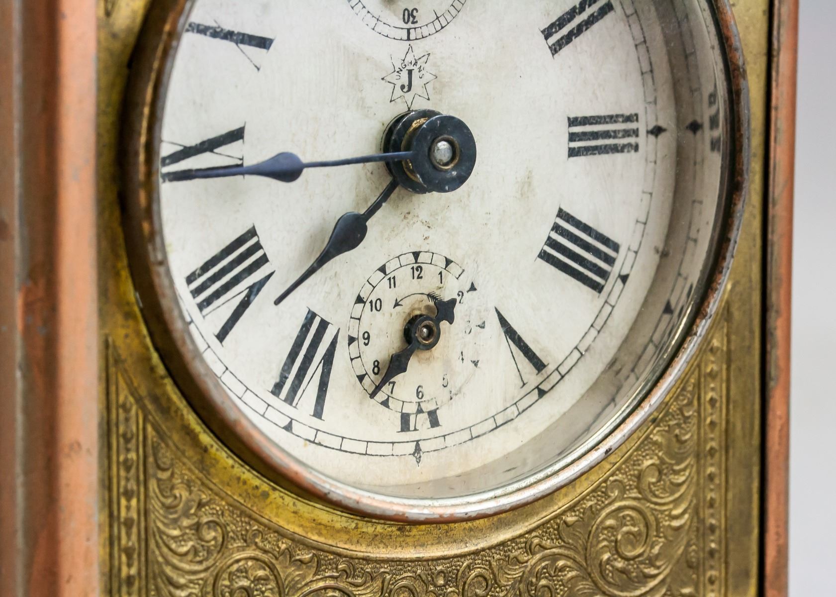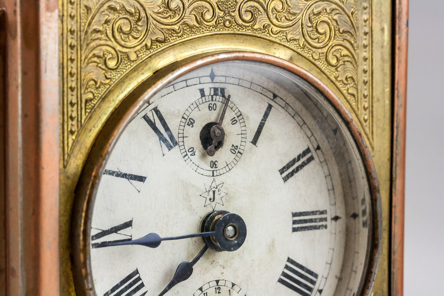 Vintage German Junghans table clock. With adjusting key. 15 x 13 cm, 777 grams