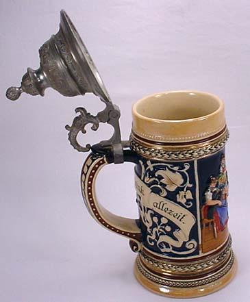 Vintage German Lidded Stien - Stamped On Bottom 244 13 - Approx. 9.25" Tall.